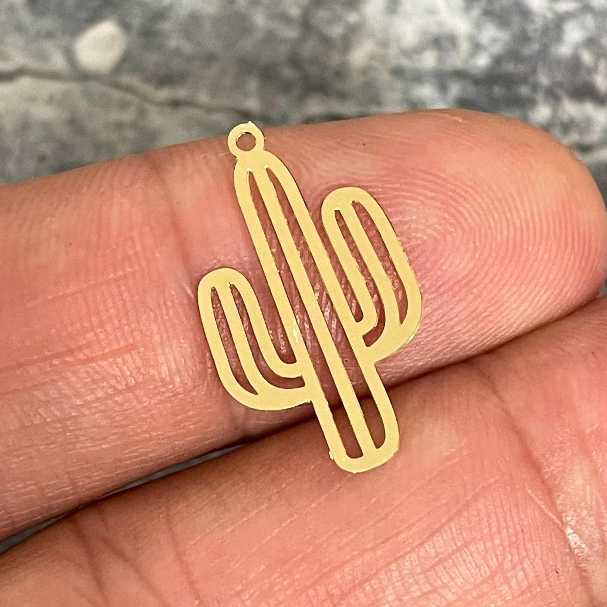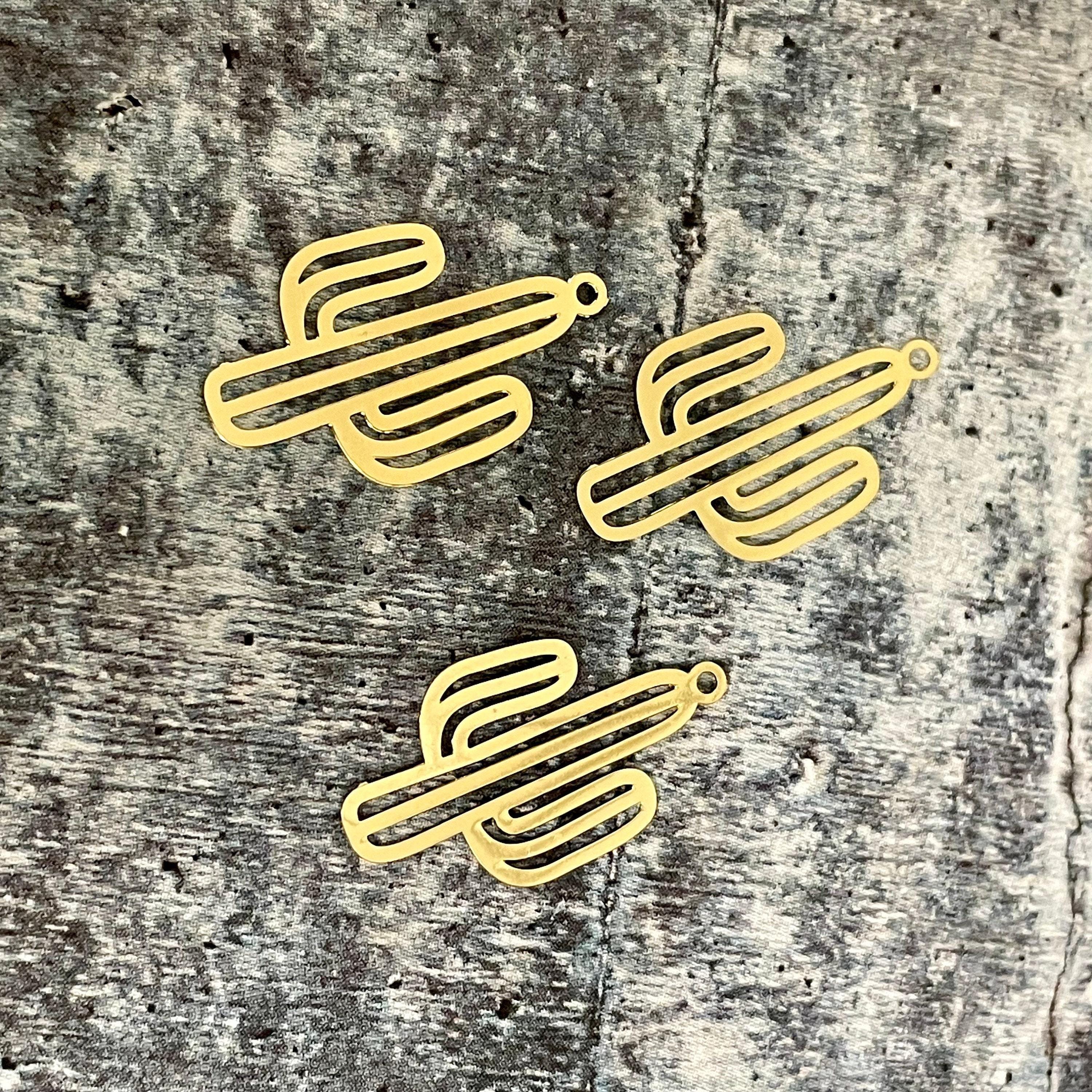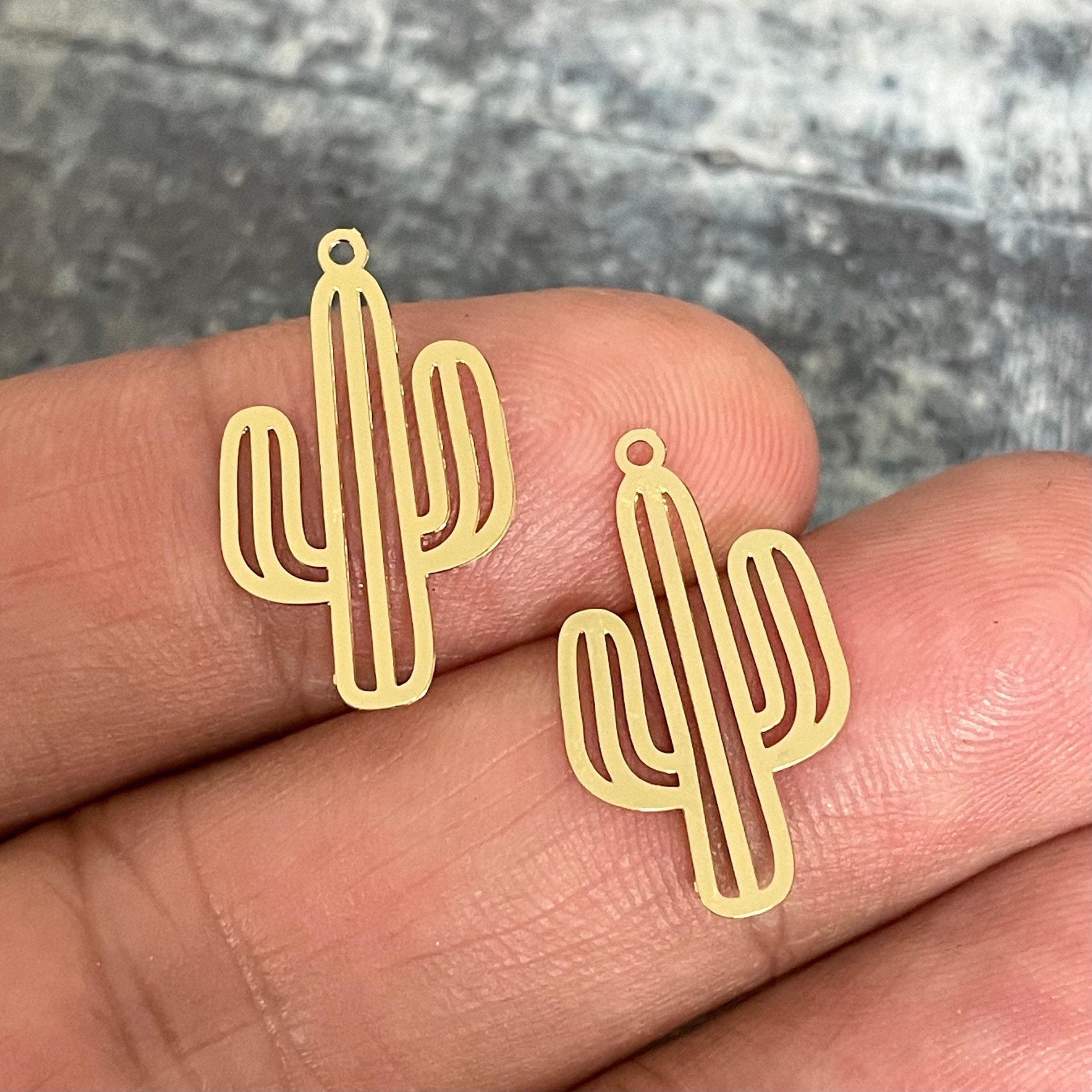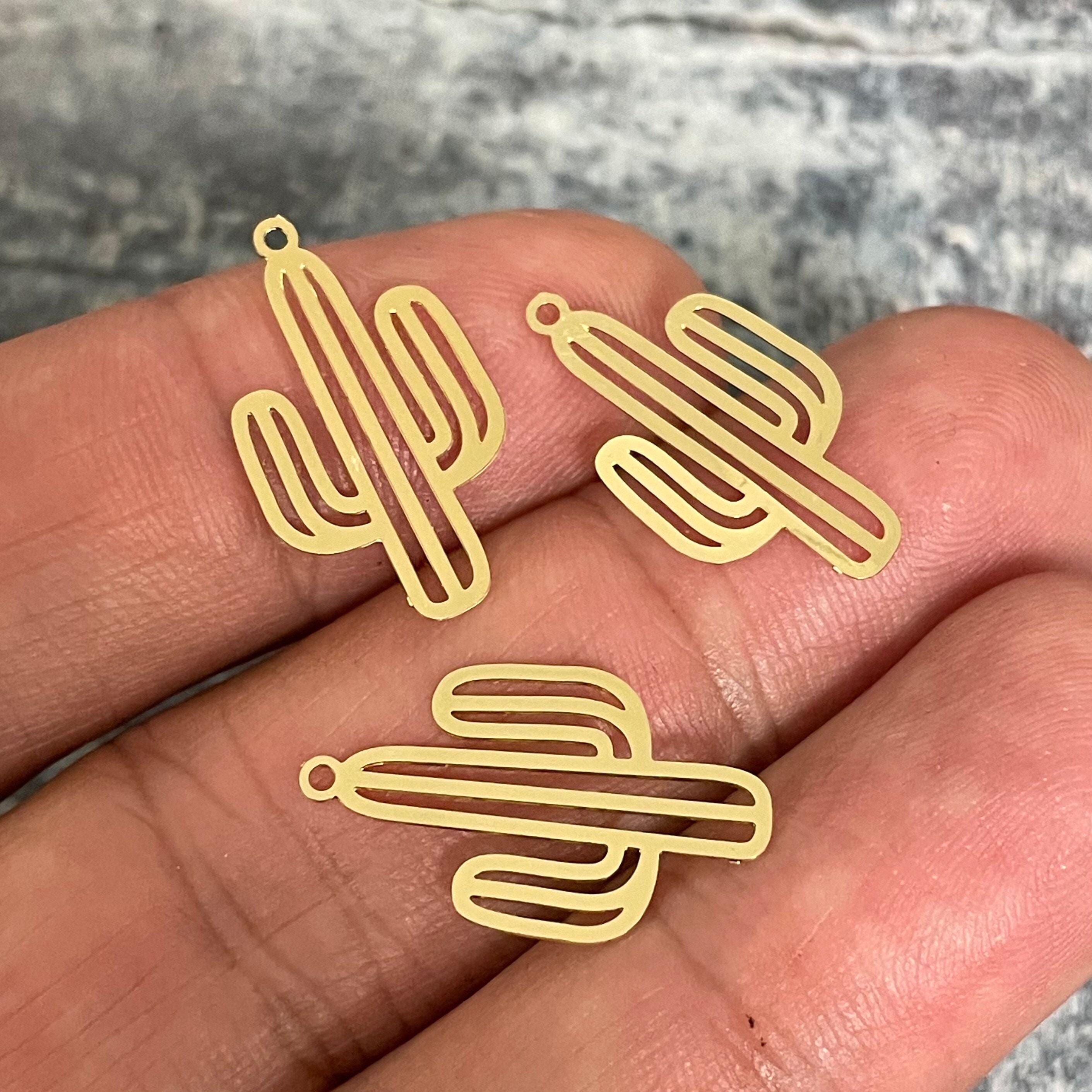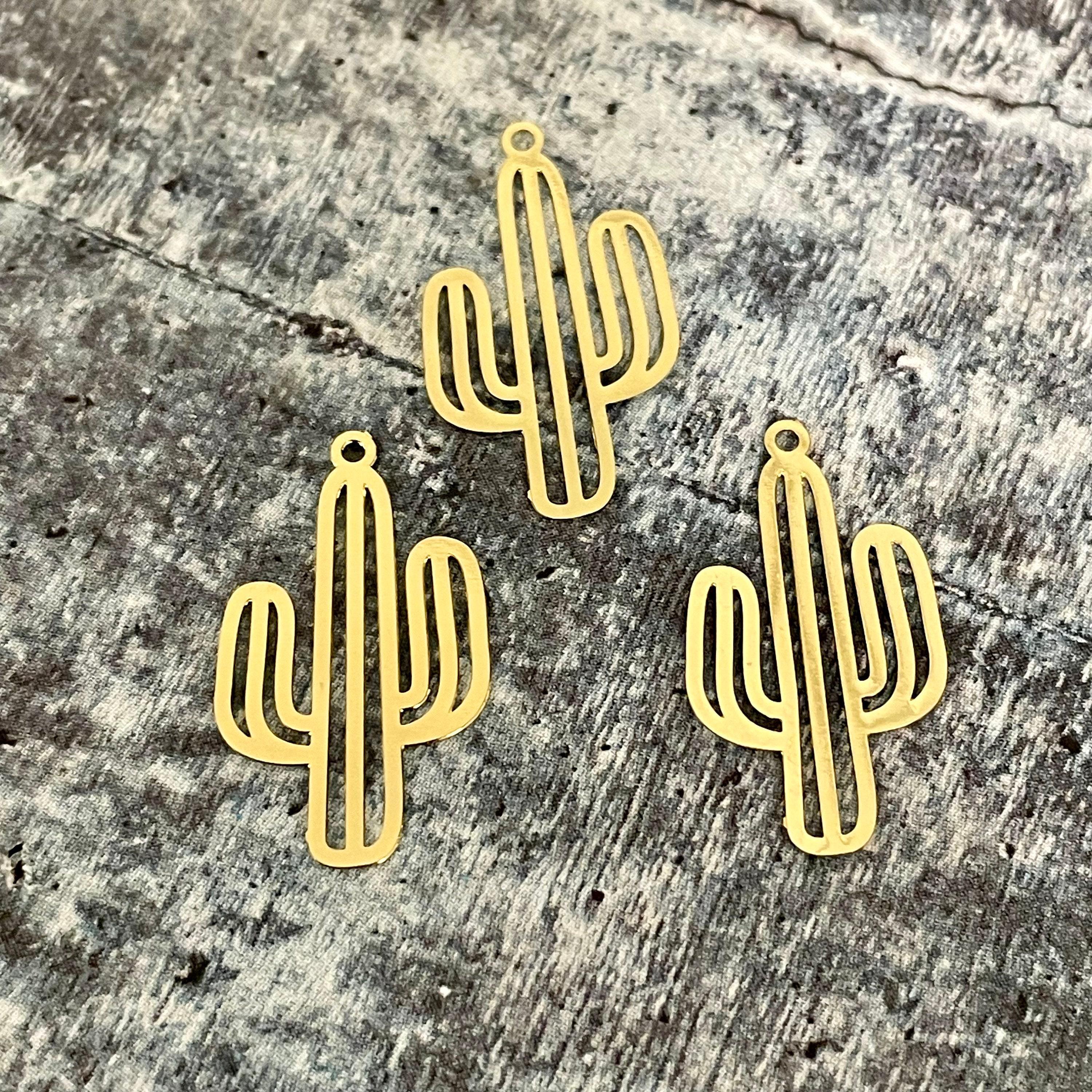 Bring a touch of desert magic to your DIY projects with these raw brass cactus charms, perfect for jewelry making and earring findings. Inspired by the rugged beauty of southwestern landscapes, each textured charm captures the essence of nature in a unique and stylish way. Whether you're crafting personalized accessories or enhancing your collection, these cactus-shaped charms add a distinctive gold cactus finish that shines with rustic elegance.