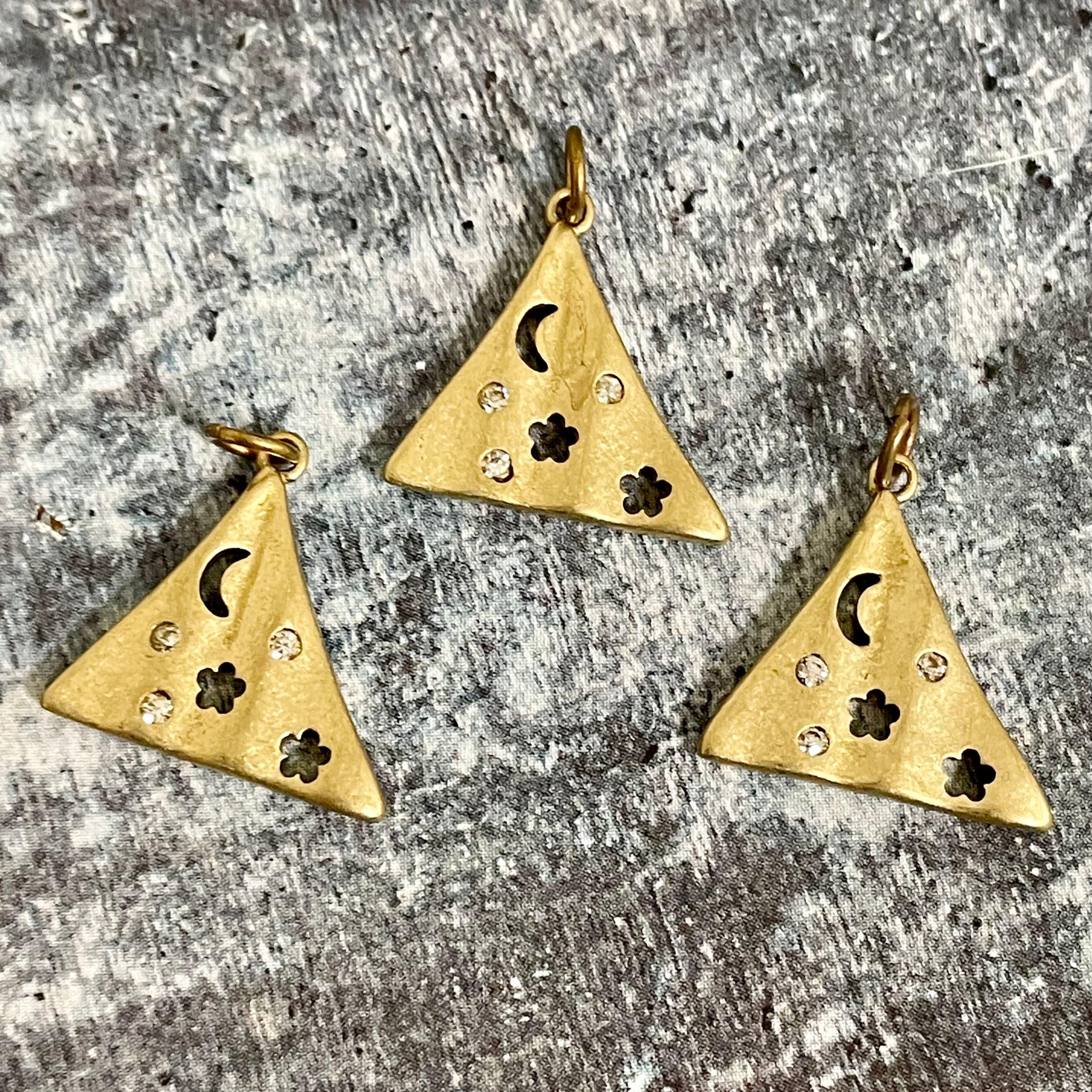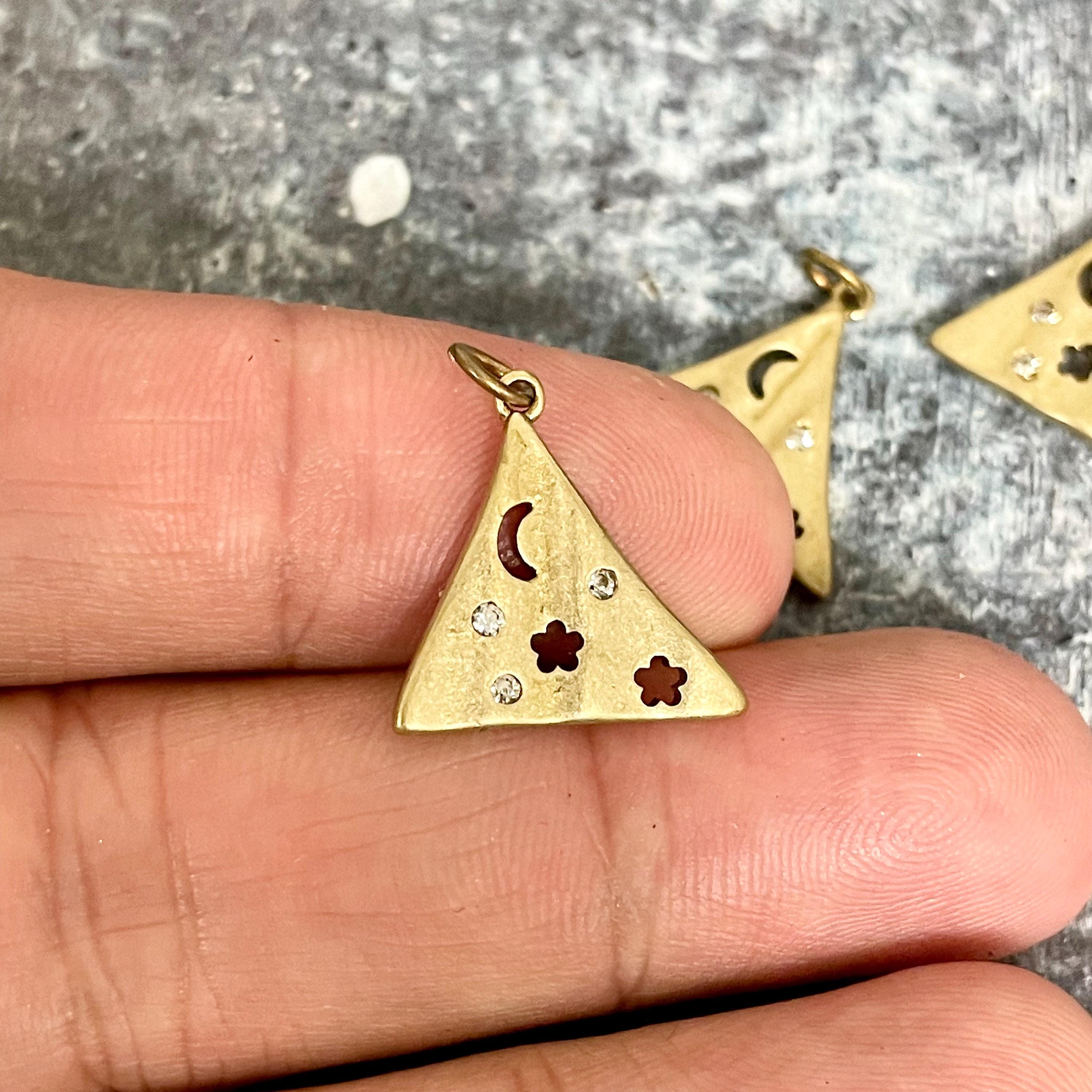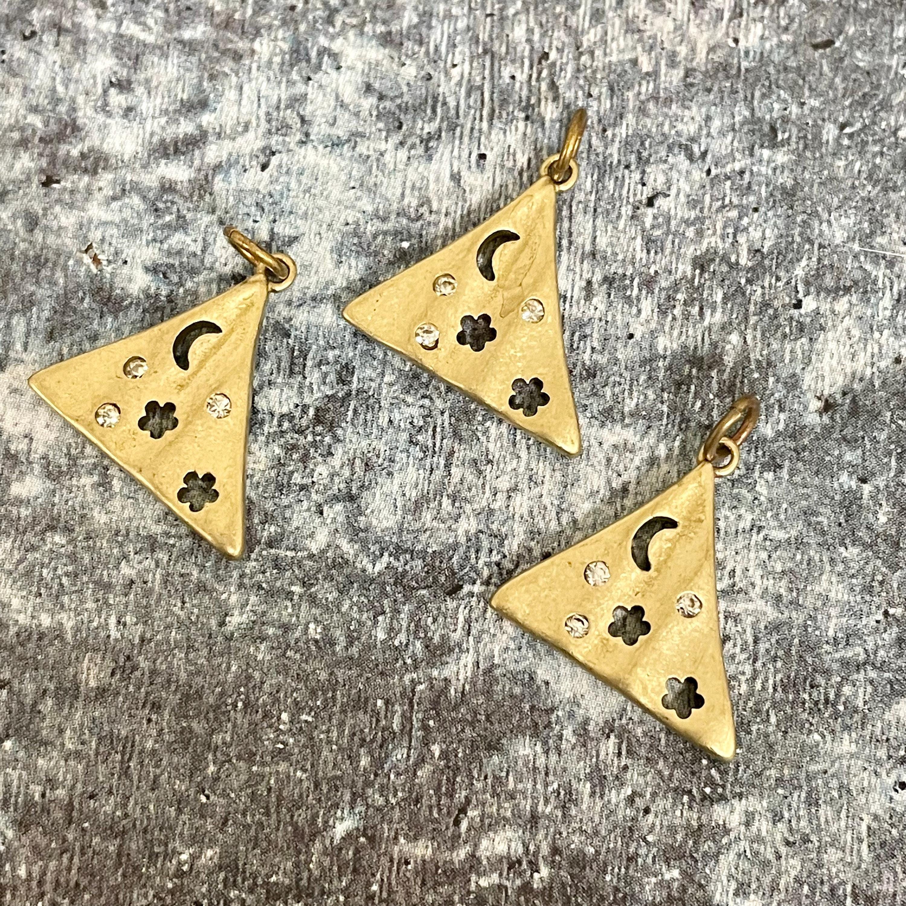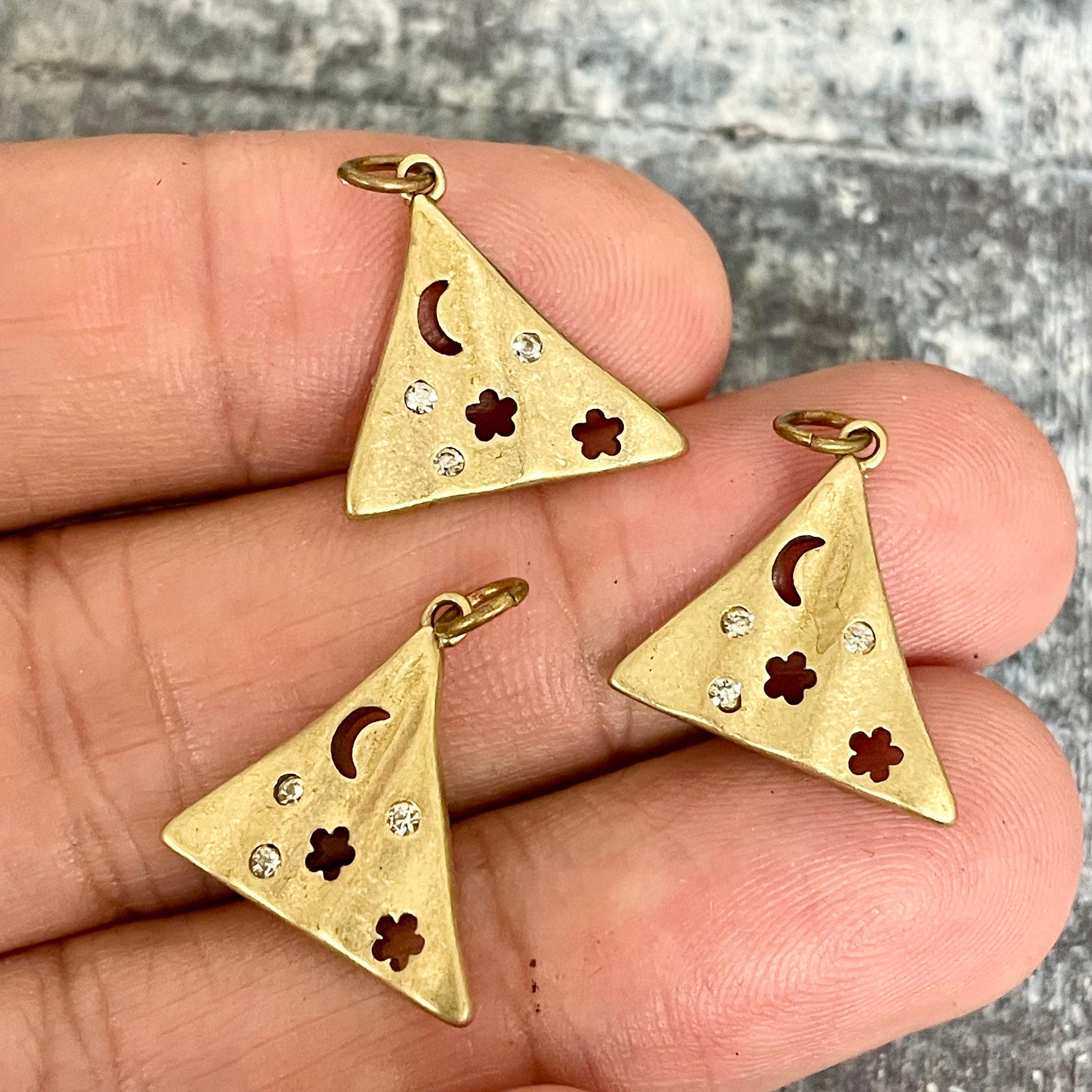 Discover the celestial charm of these brass stars triangle earring charms, designed to inspire jewelry makers with their raw brass star beauty and delicate zircon accents. Each star crescent charm captures a unique blend of rustic elegance and sparkling detail, perfect for adding a boho star pendant touch to your creations. Whether you're designing earrings or pendants, these versatile charms bring a timeless glow to every piece.