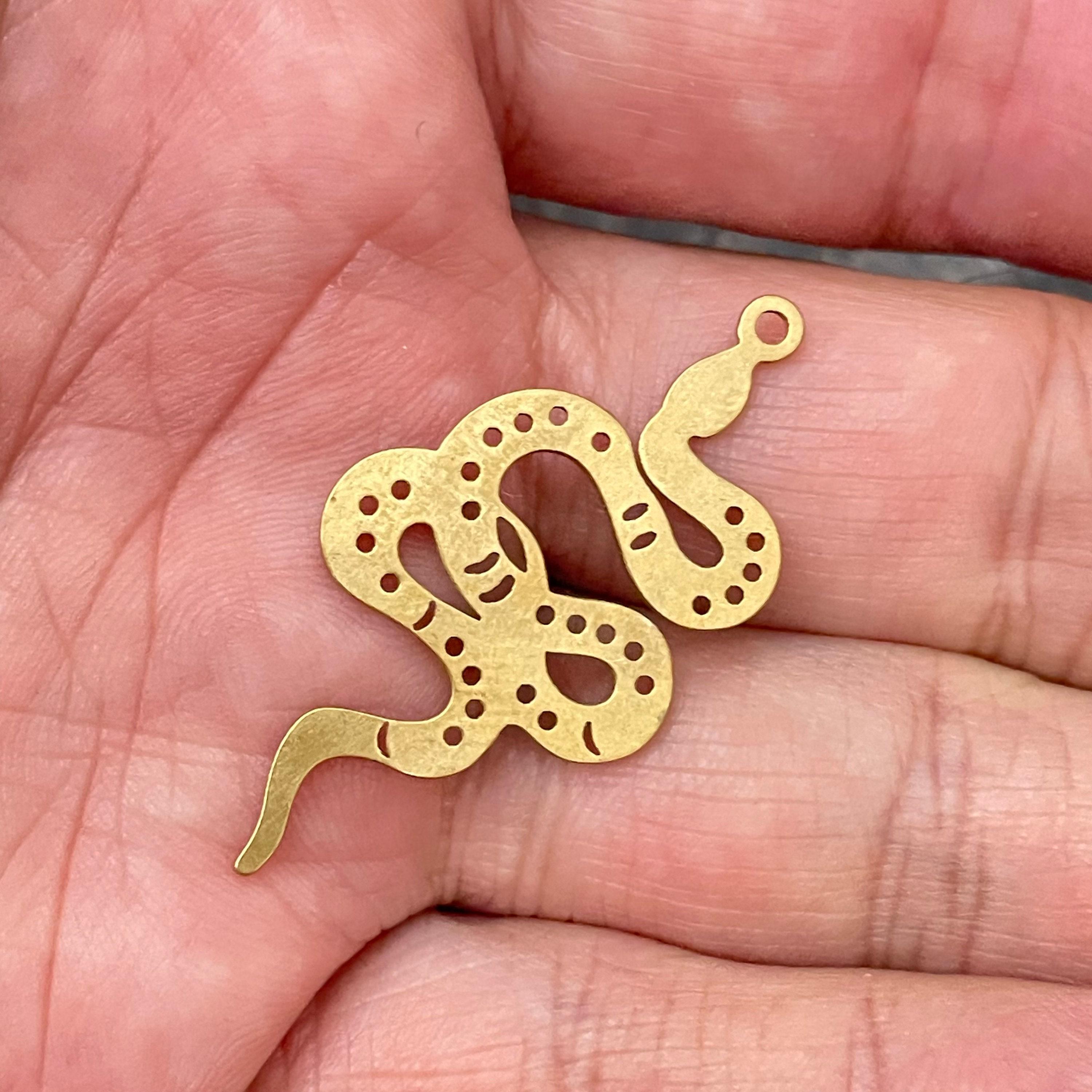 Discover the perfect addition to your jewelry-making collection with these raw brass snake earring charms. Designed for jewelry findings enthusiasts, these brass snake charms blend timeless elegance with a hint of edgy sophistication. Whether you're crafting statement pieces or delicate accessories, these snake pendants bring a unique geometric jewelry flair that complements any style.
