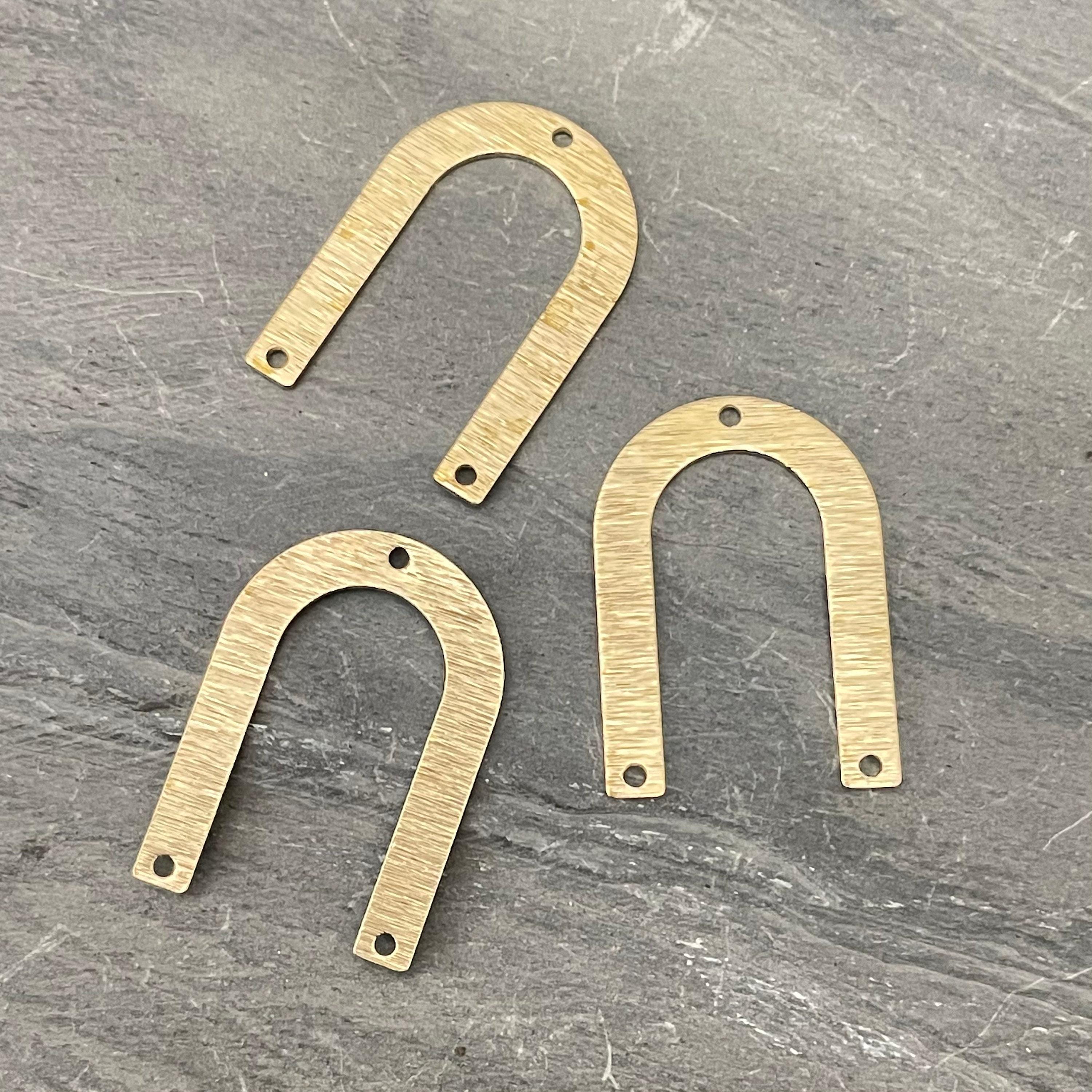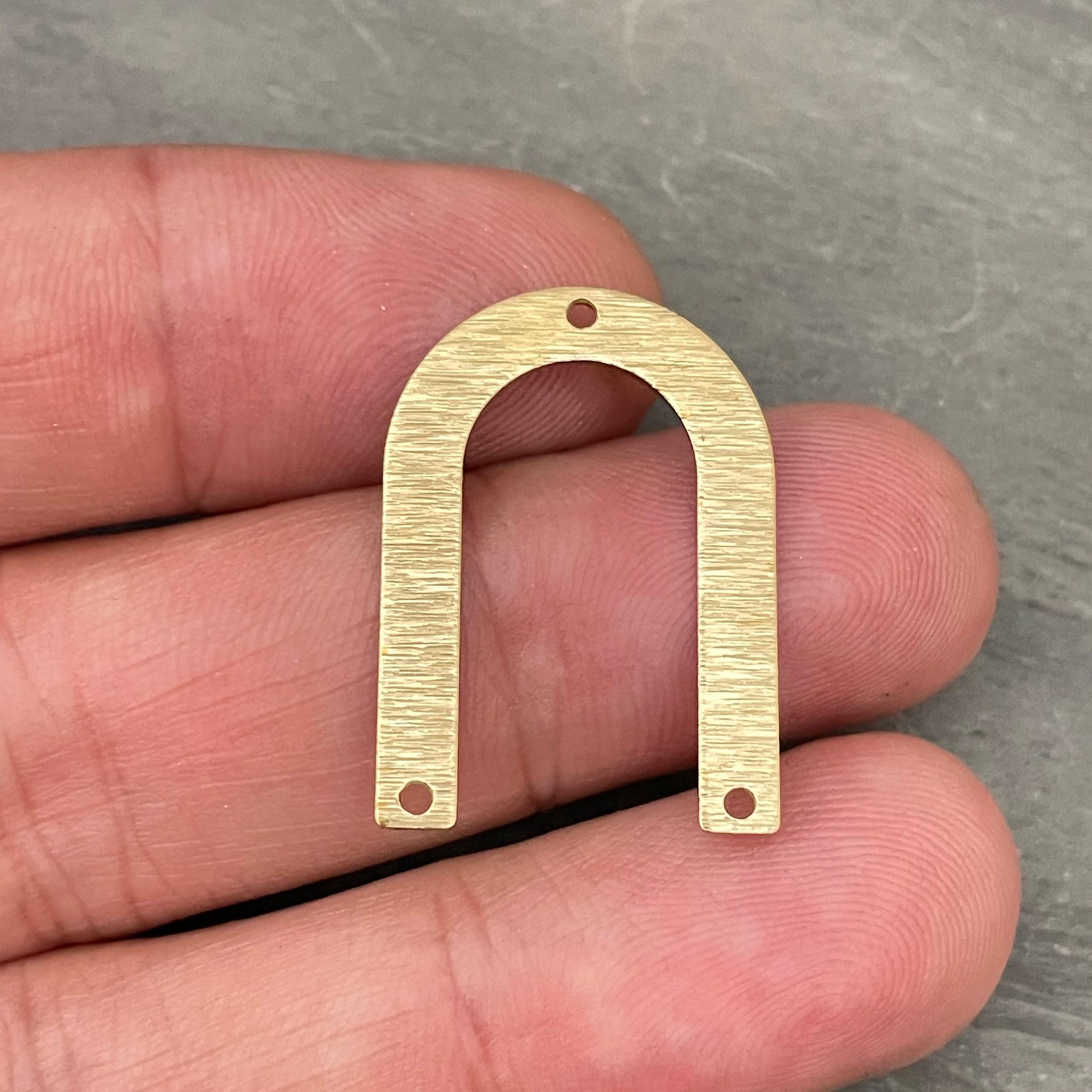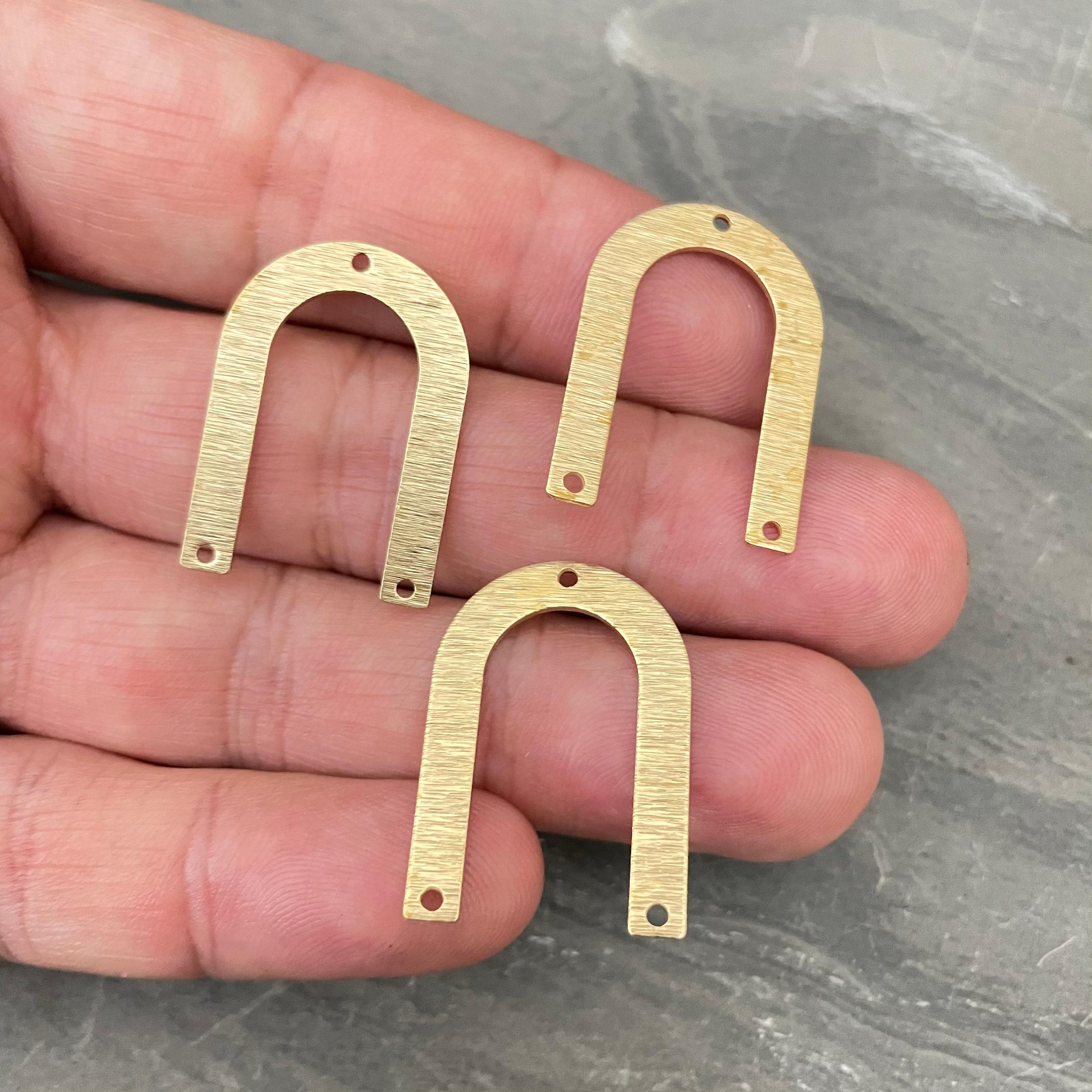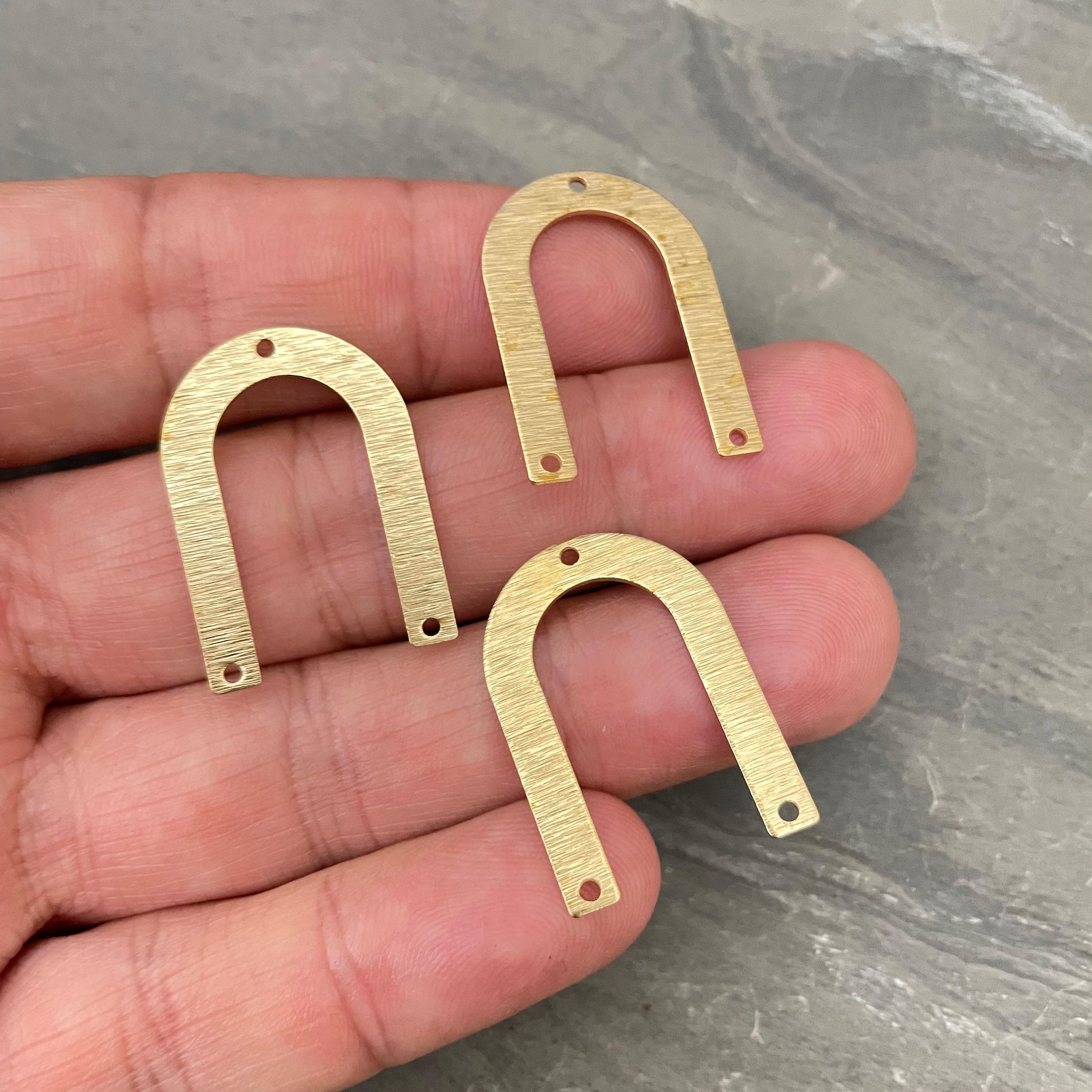 Discover the charm of our textured U-shaped raw brass connectors, perfect for adding a unique touch to your jewelry creations. These brass charms are thoughtfully designed with three holes, making them versatile components for earring findings or other jewelry parts. Crafted from raw brass with a distinctive hammered finish, they bring both style and function to your handmade pieces.