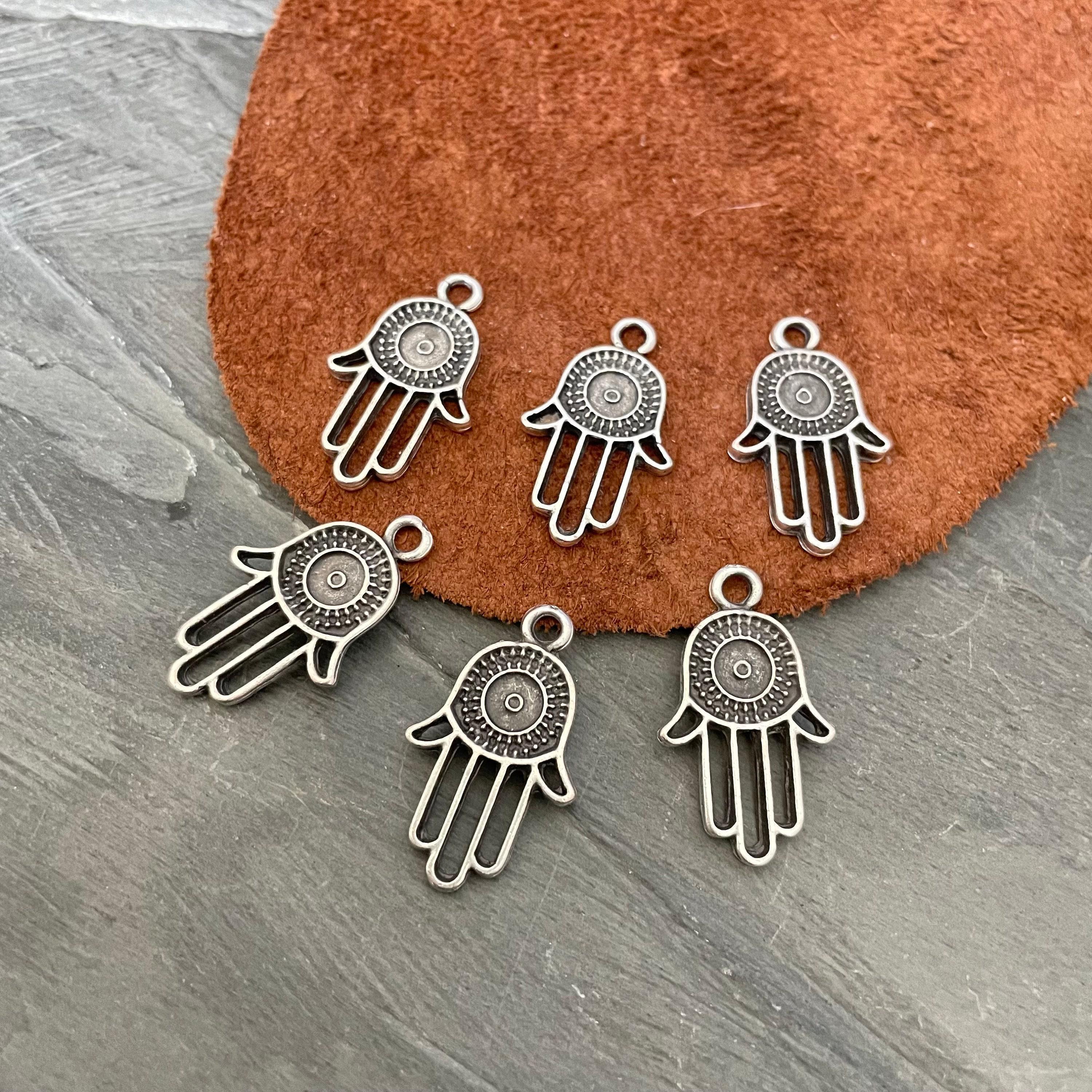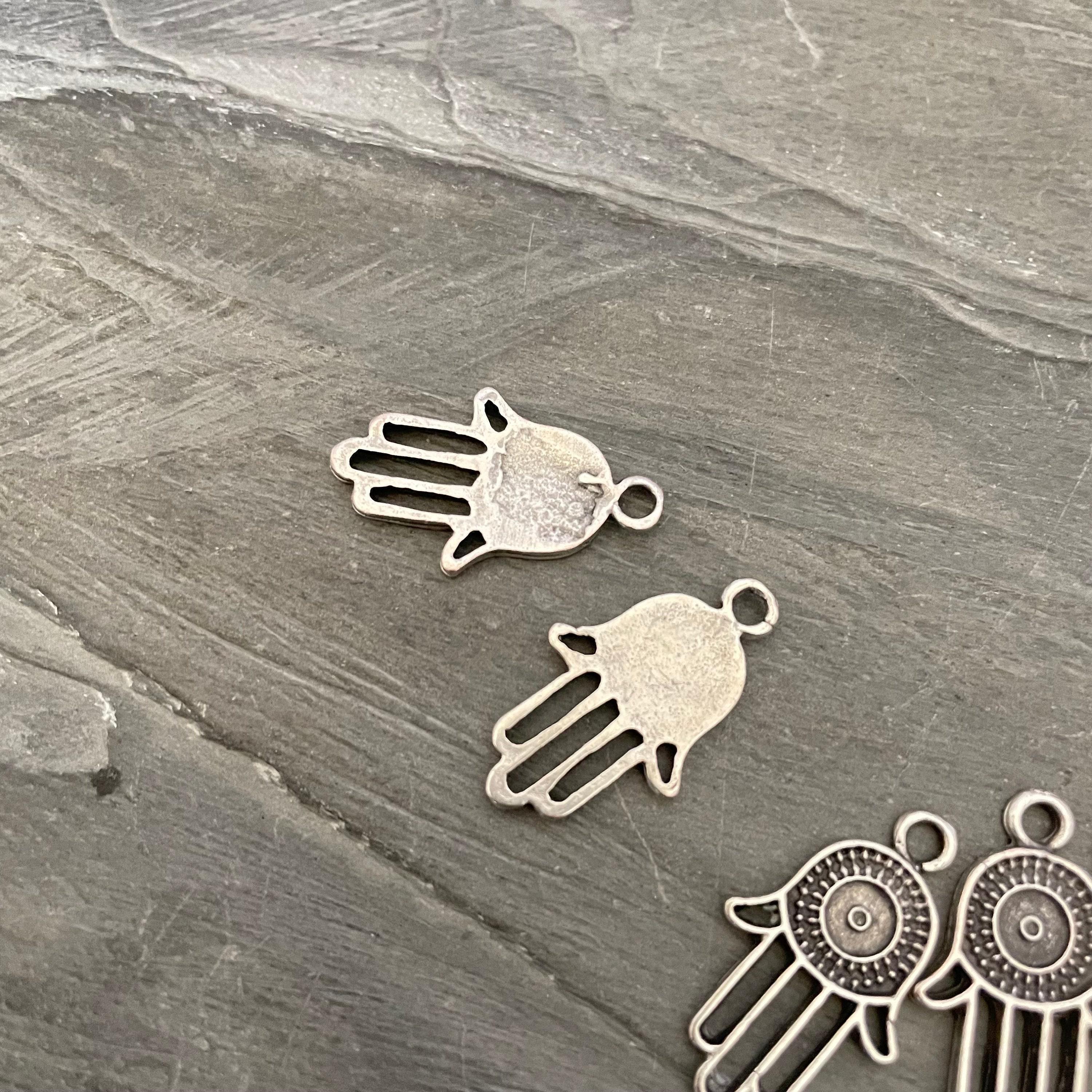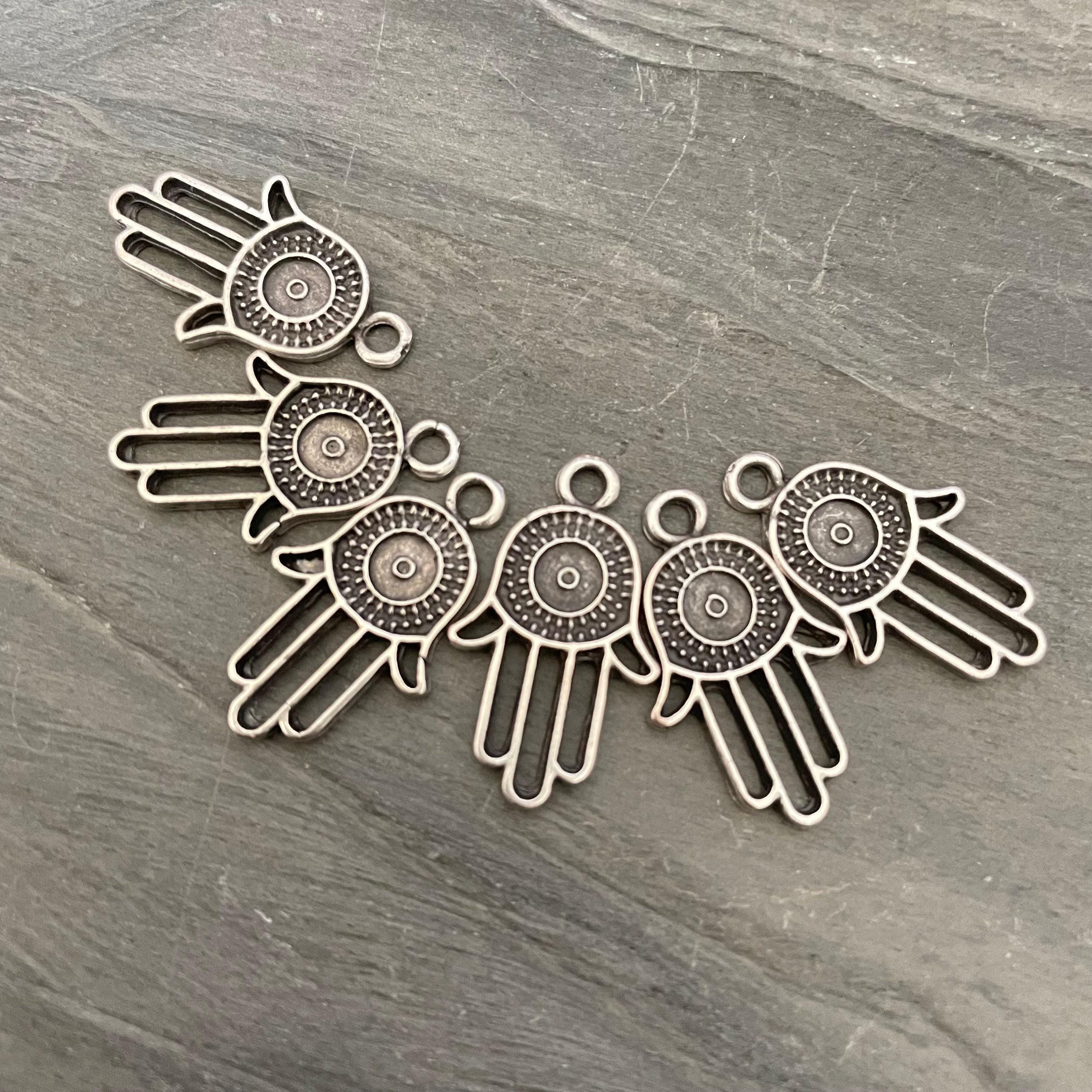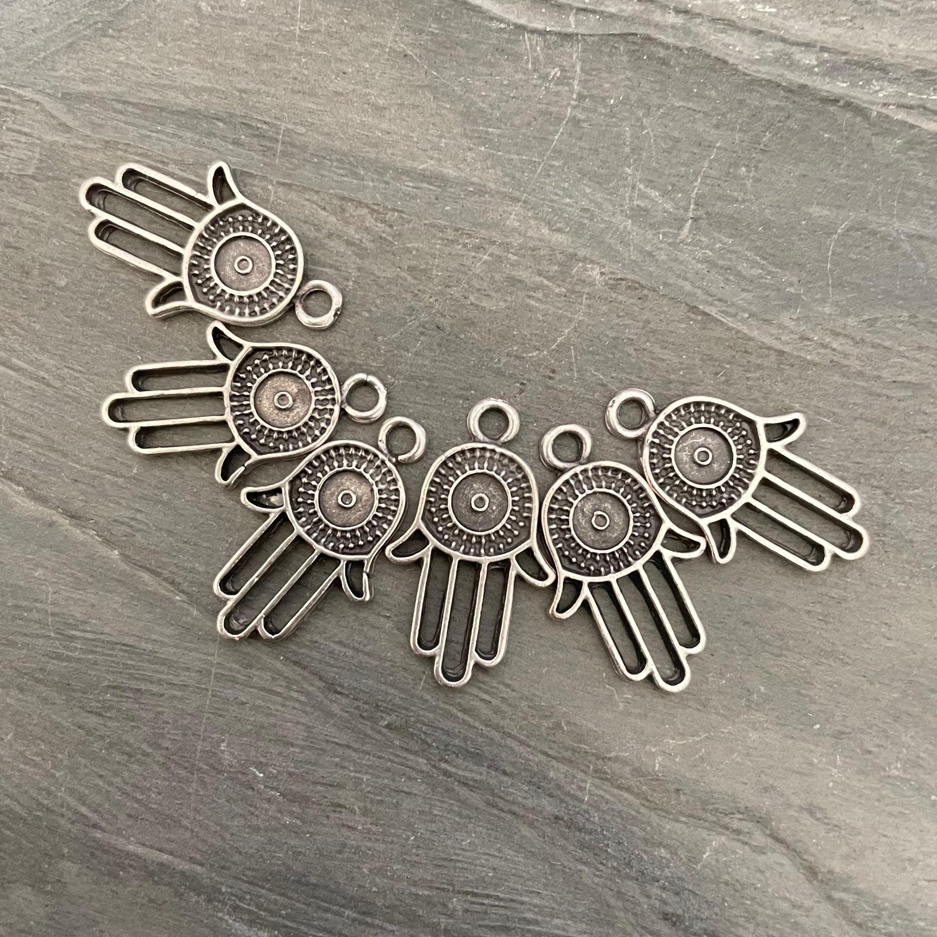 - Set of 6 antique silver plated pewter findings featuring the Hamsa - Fatima hand design