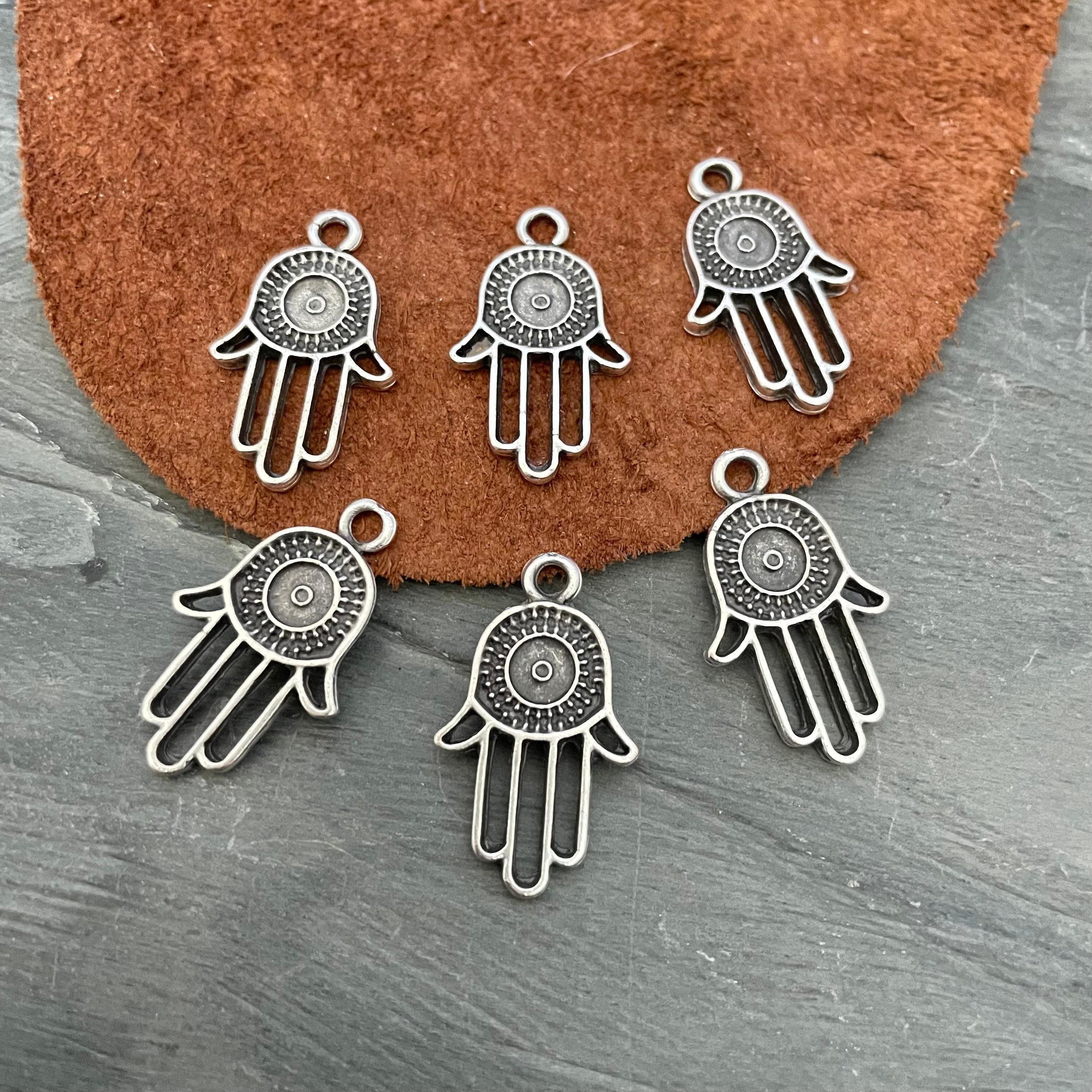 Discover the charm of vintage craftsmanship with these antique silver earring and necklace findings, inspired by the timeless Hamsa - Fatima hand symbol. Perfect for jewelry making enthusiasts, these bohemian pendants add a unique touch to your creations, blending antique plated elegance with versatile design. Whether you're crafting necklaces or earrings, these jewelry findings offer both style and tradition in one beautiful package.
