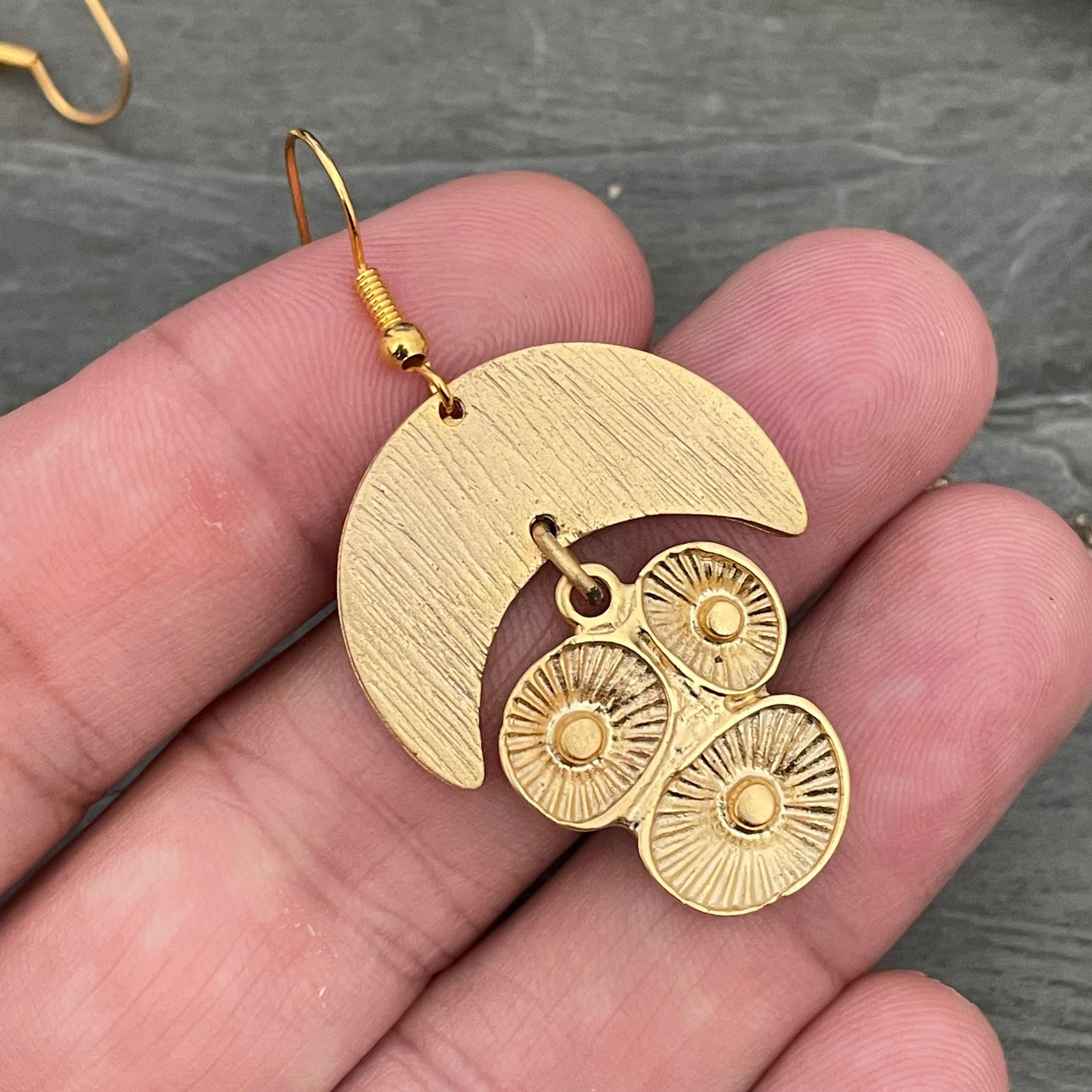 Discover the enchanting allure of our matte gold half moon charms, thoughtfully designed for your earring making projects. These bohemian findings bring a unique ethnic charm to your creations, crafted from antique raw brass with a subtle gold plating that adds warmth without shine. Perfect for artisans seeking quality brass findings to elevate wholesale earrings or personal jewelry collections.