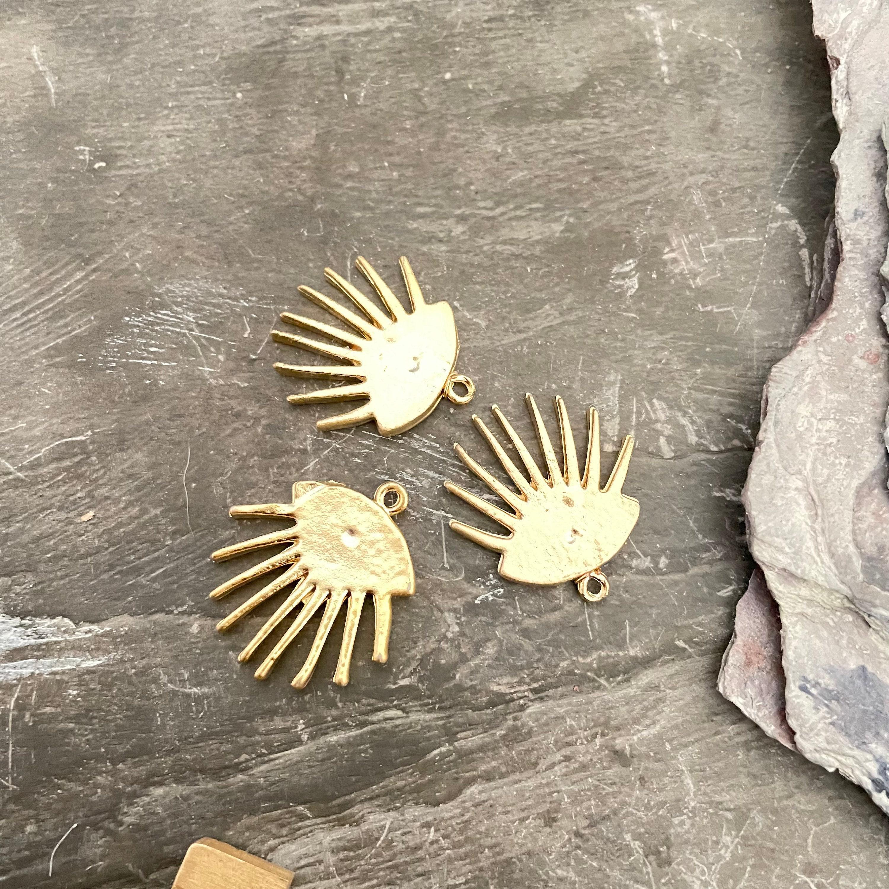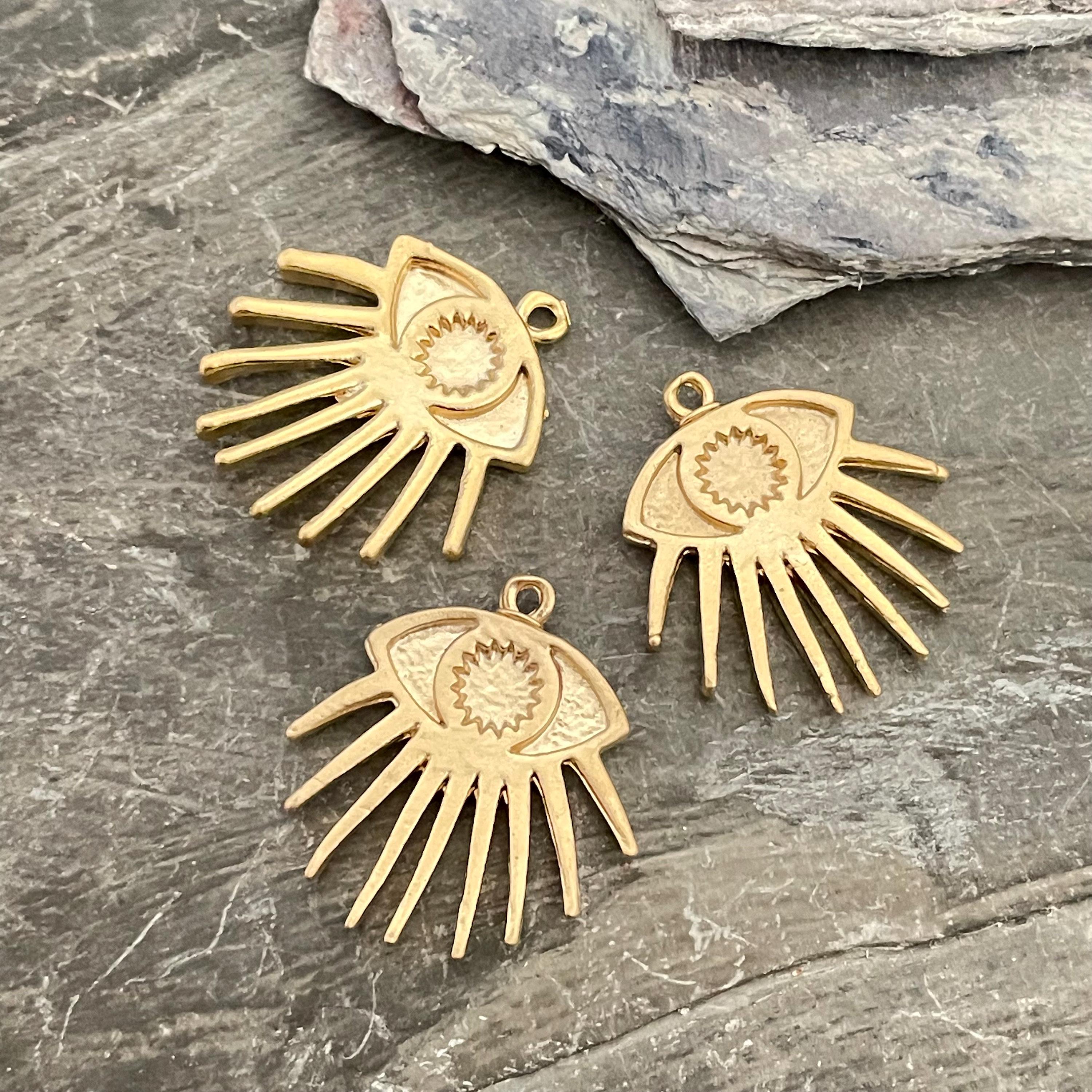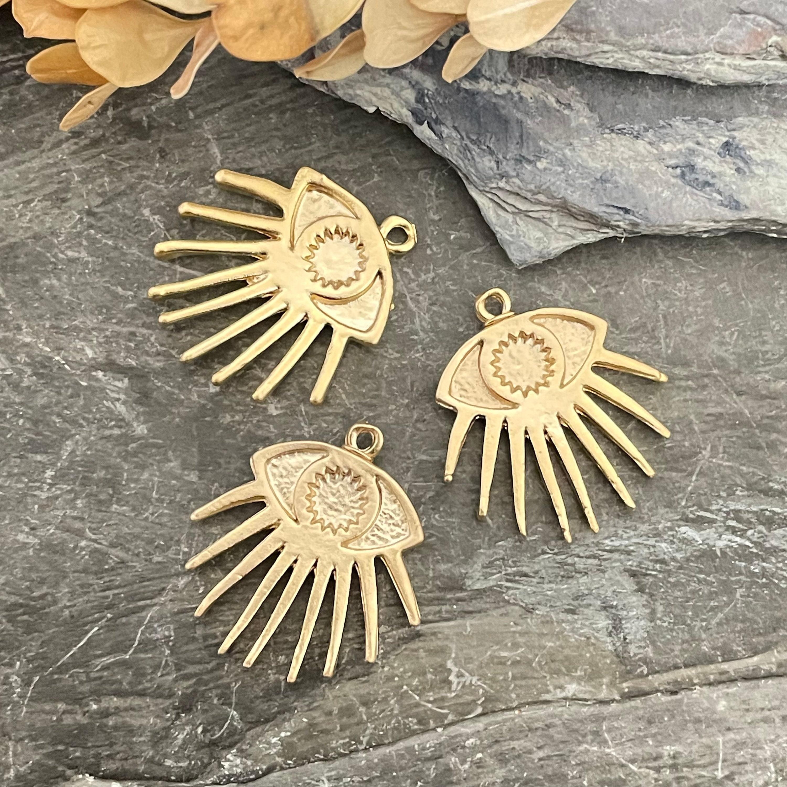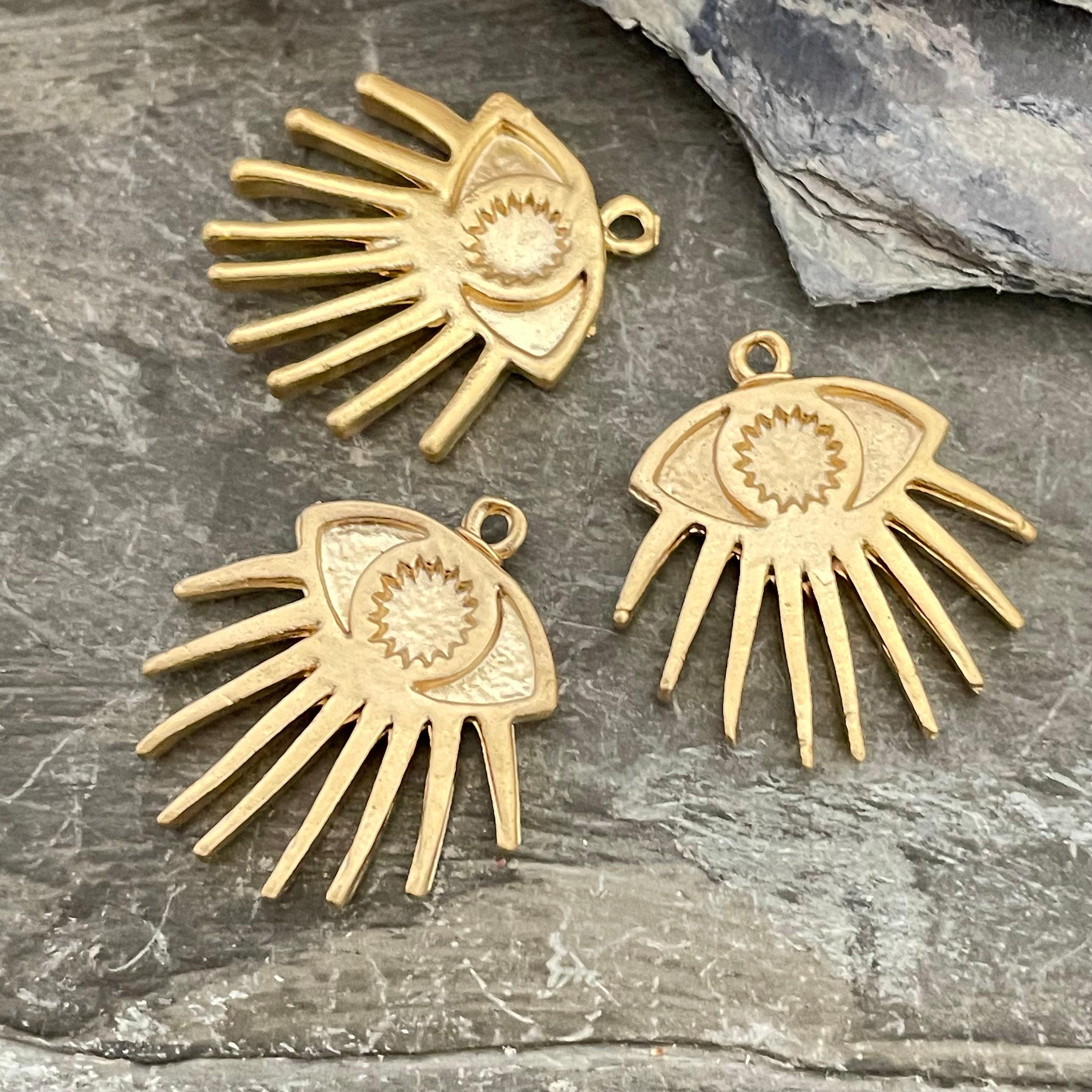 Discover the charm of our matte gold Evil Eye charms, thoughtfully crafted to inspire your next jewelry creation. These bohemian findings, made from antique brass, bring a unique ethnic flair to your designs, perfect for earring making enthusiasts seeking distinctive earring parts. Each piece carries the timeless symbolism of protection while offering versatile use in wholesale earring projects or personalized gifts.