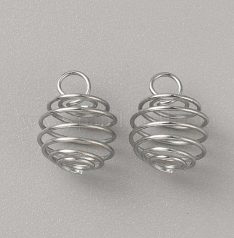 Stainless Steel Spiral Bead Cage Pendants, Hollow Spring Ball Charms, Platinum