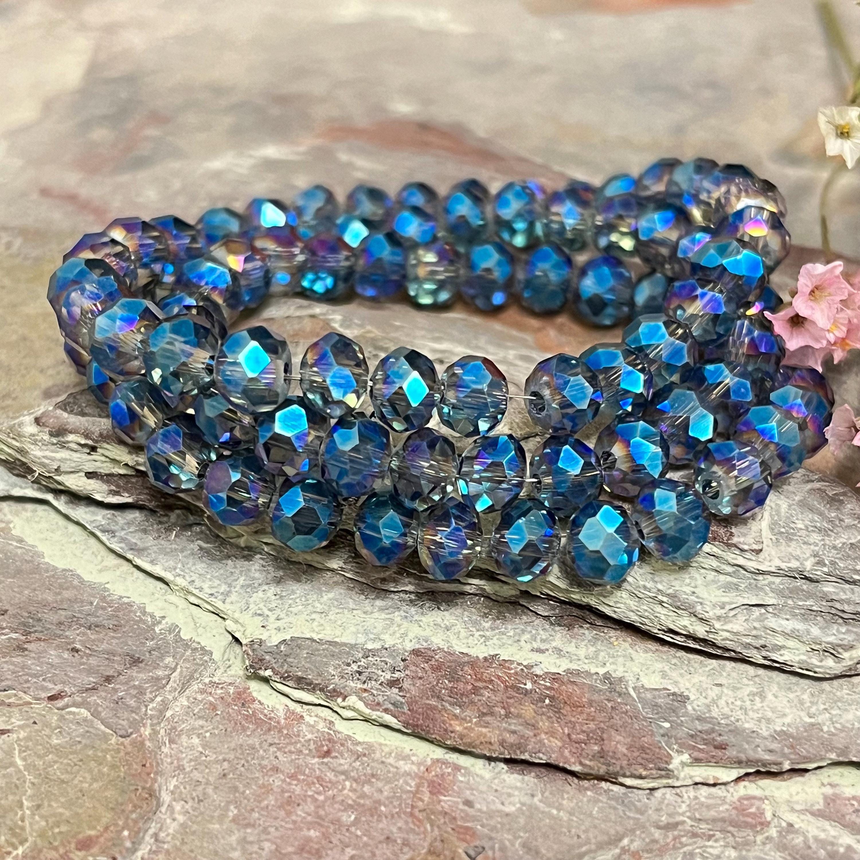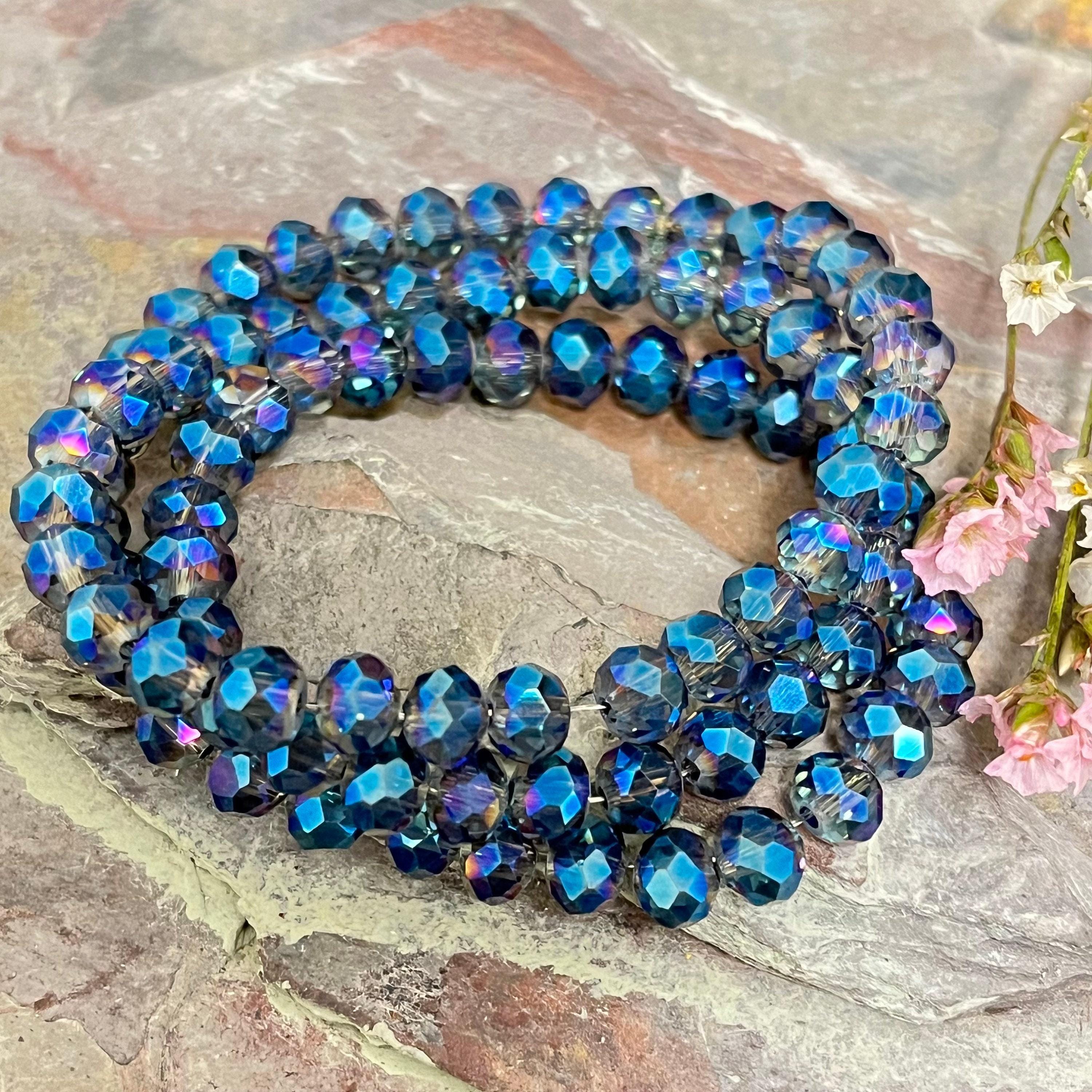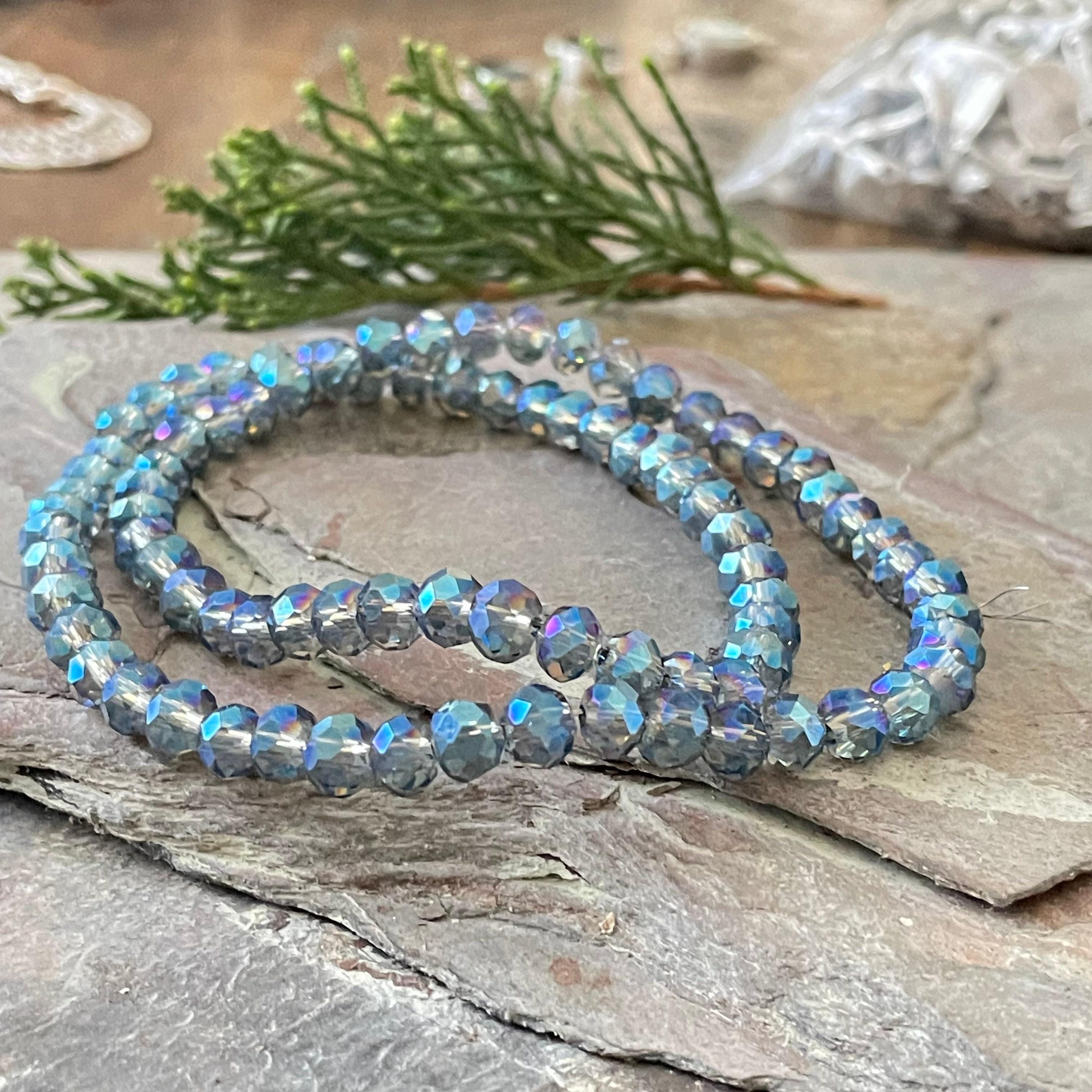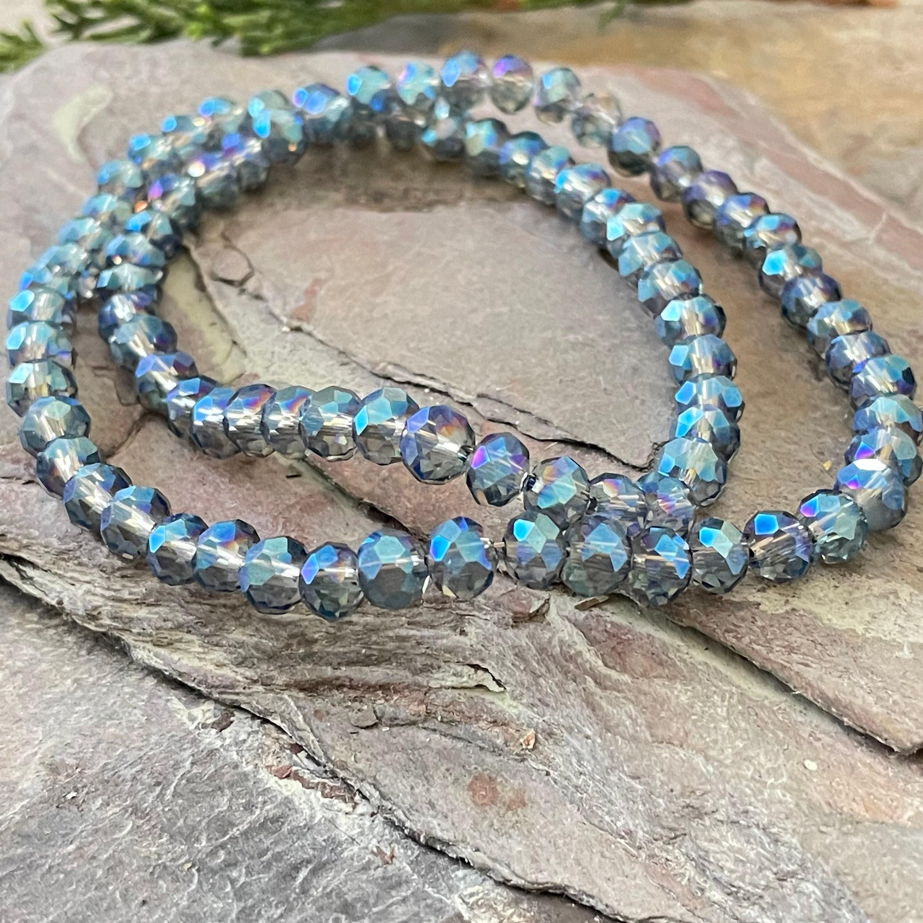 - Approximately 130 electroplated transparent glass beads per strand