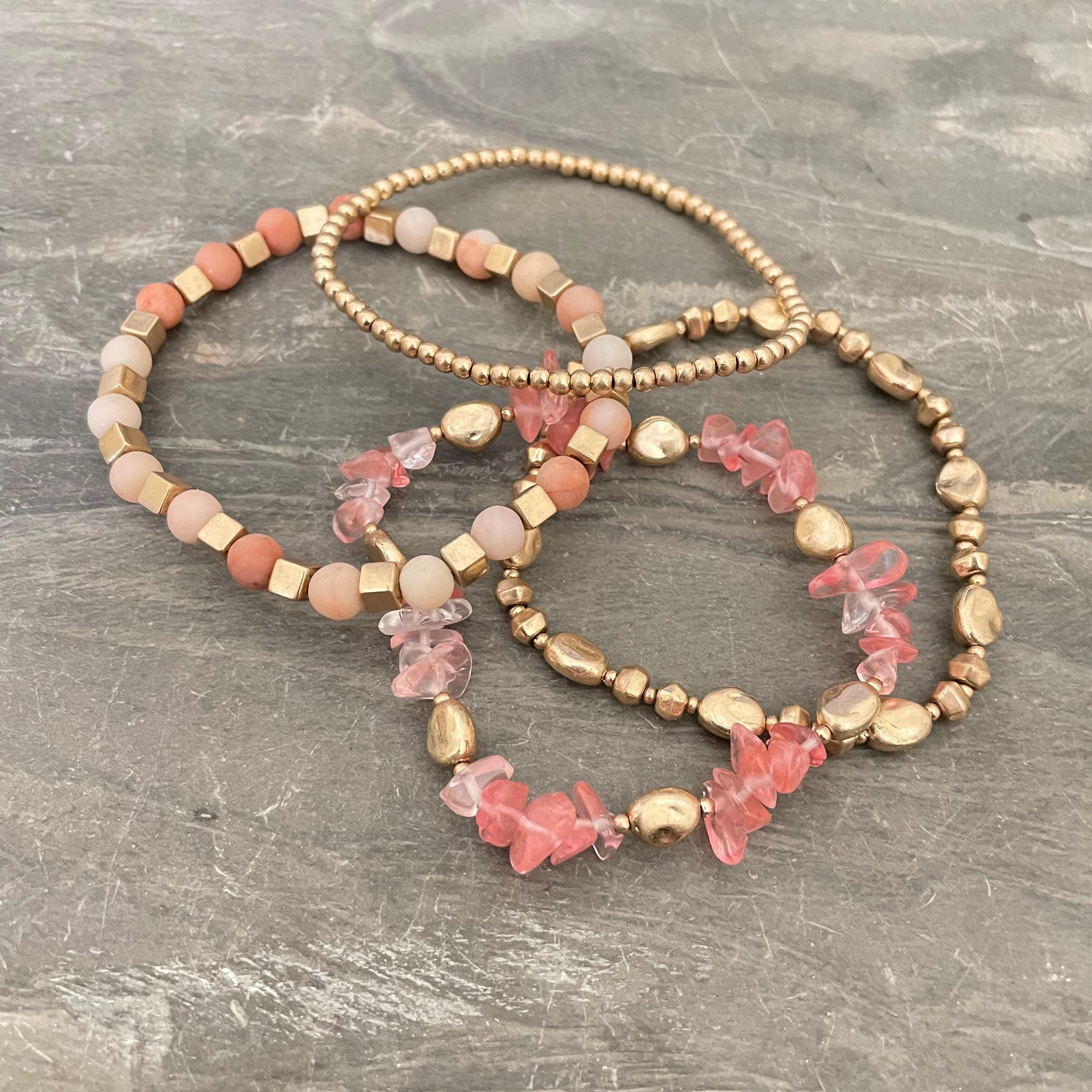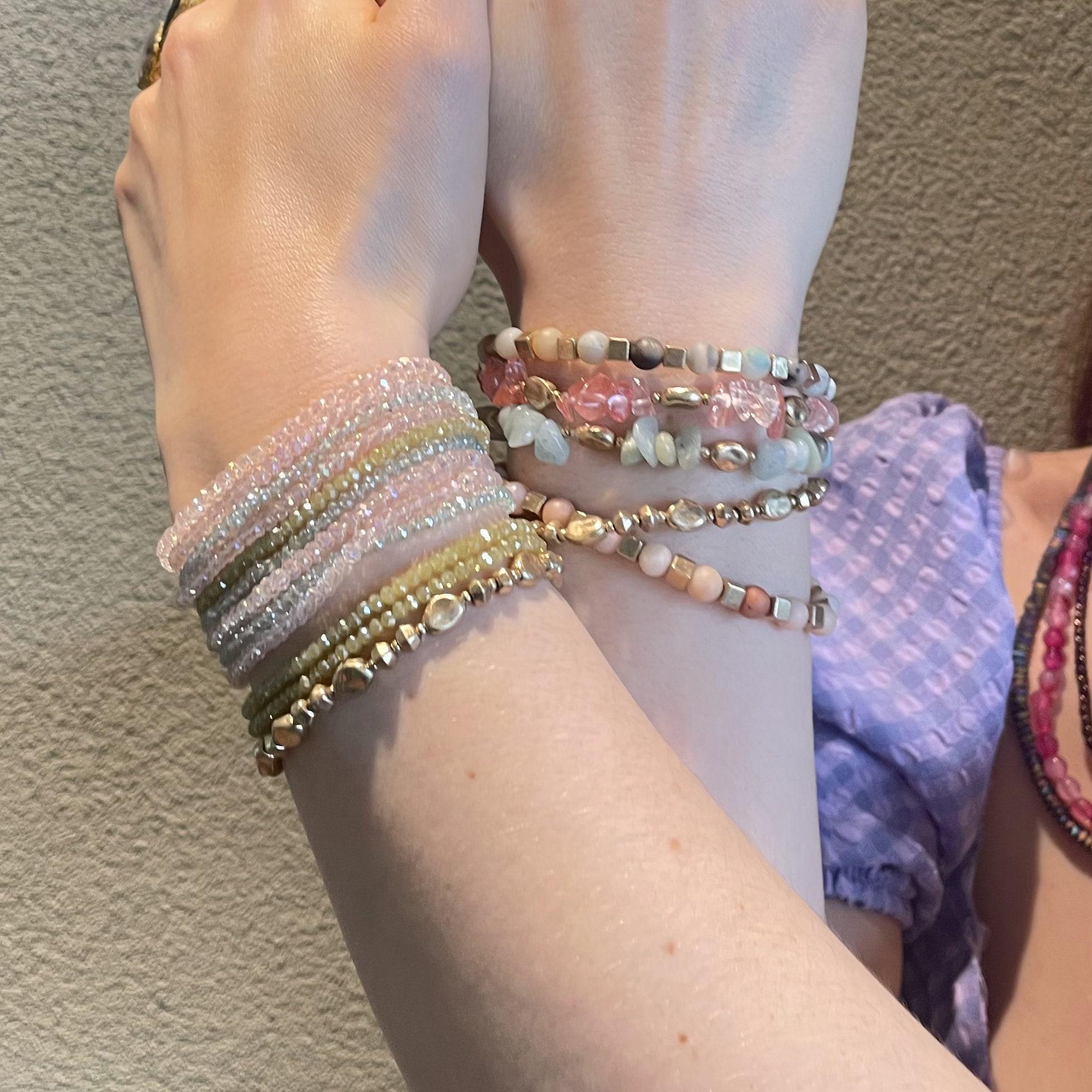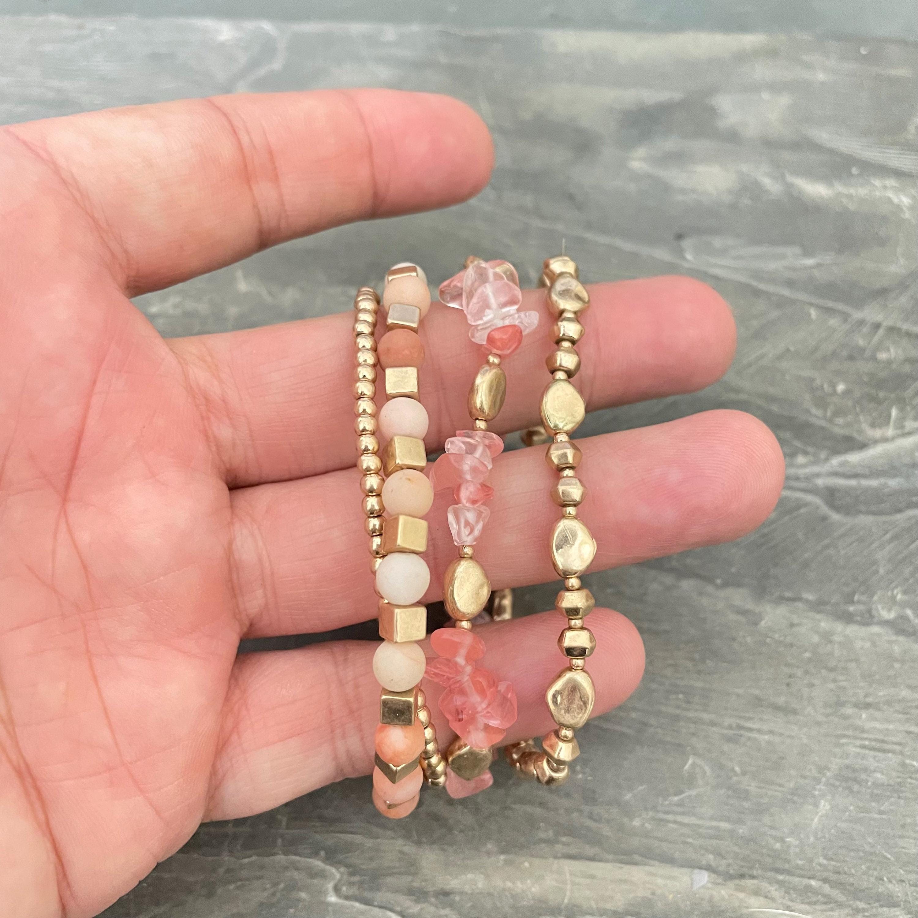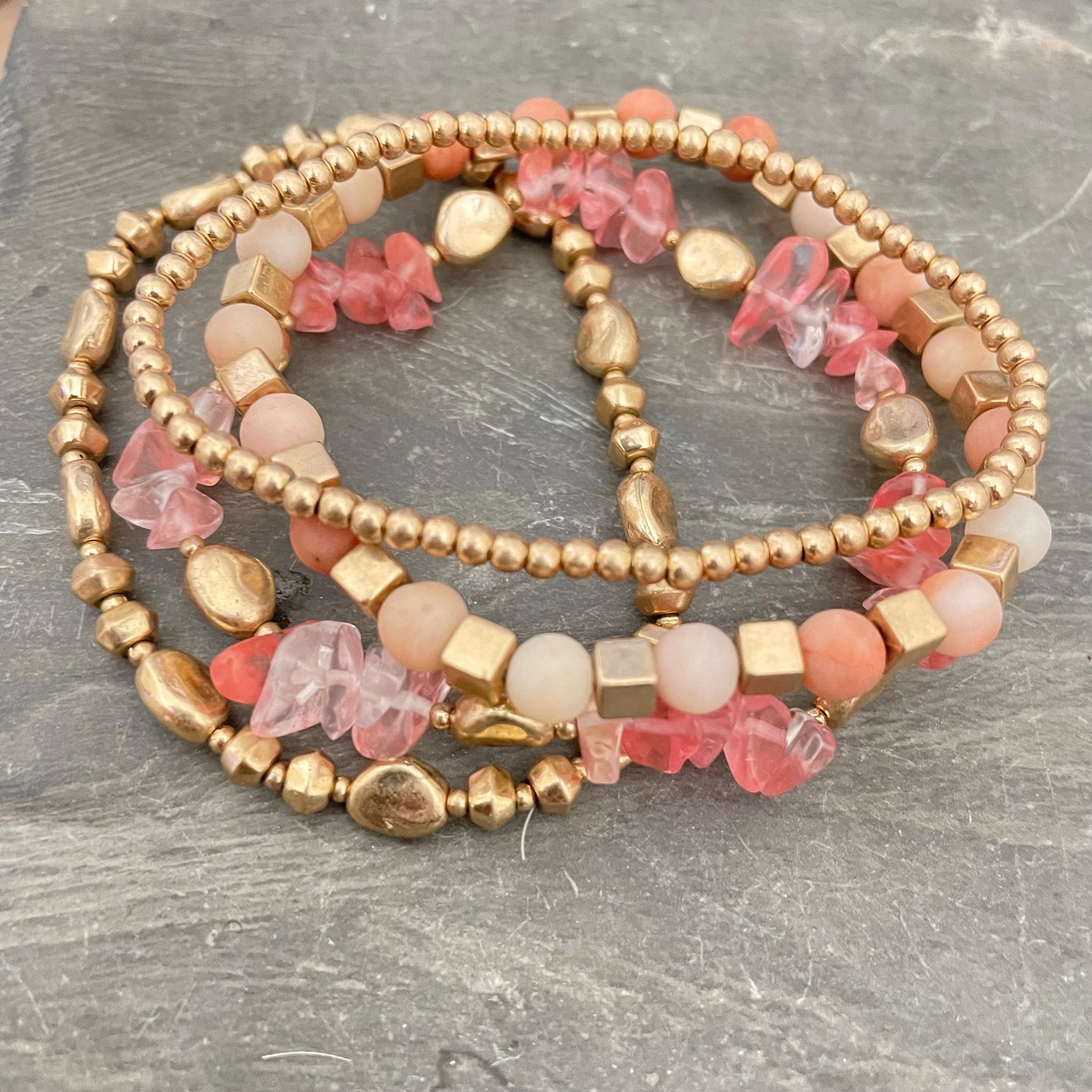 - Set includes 4 distinct beaded bracelets, ideal for layering or wearing individually