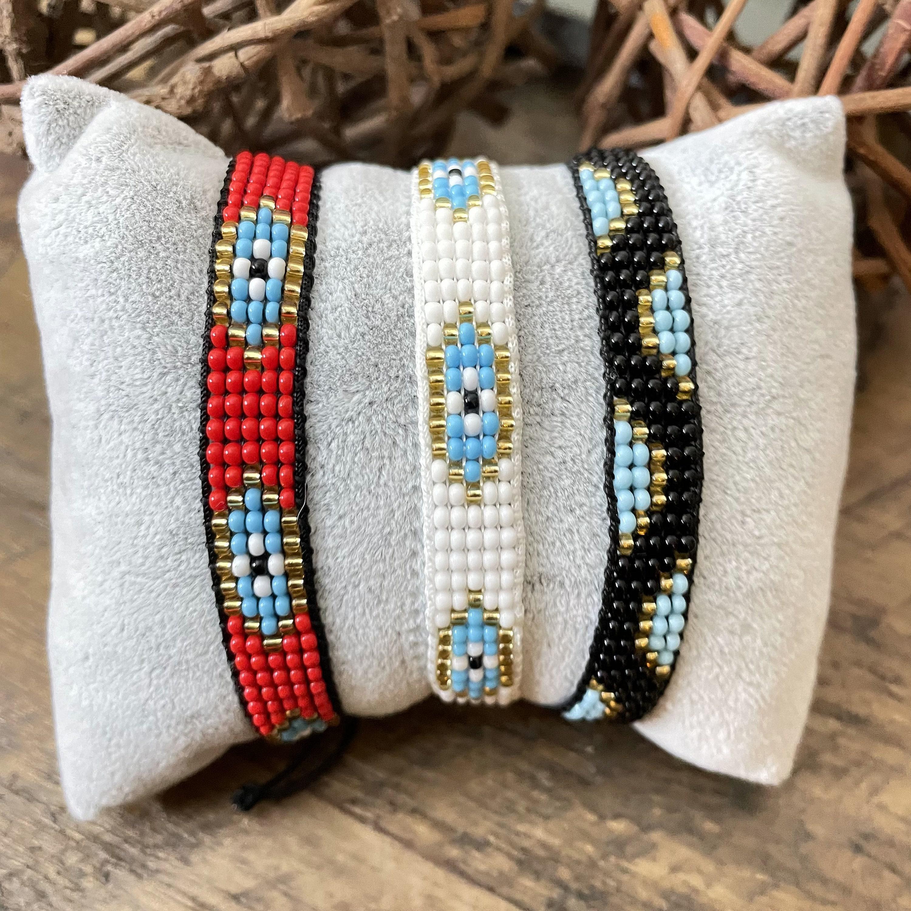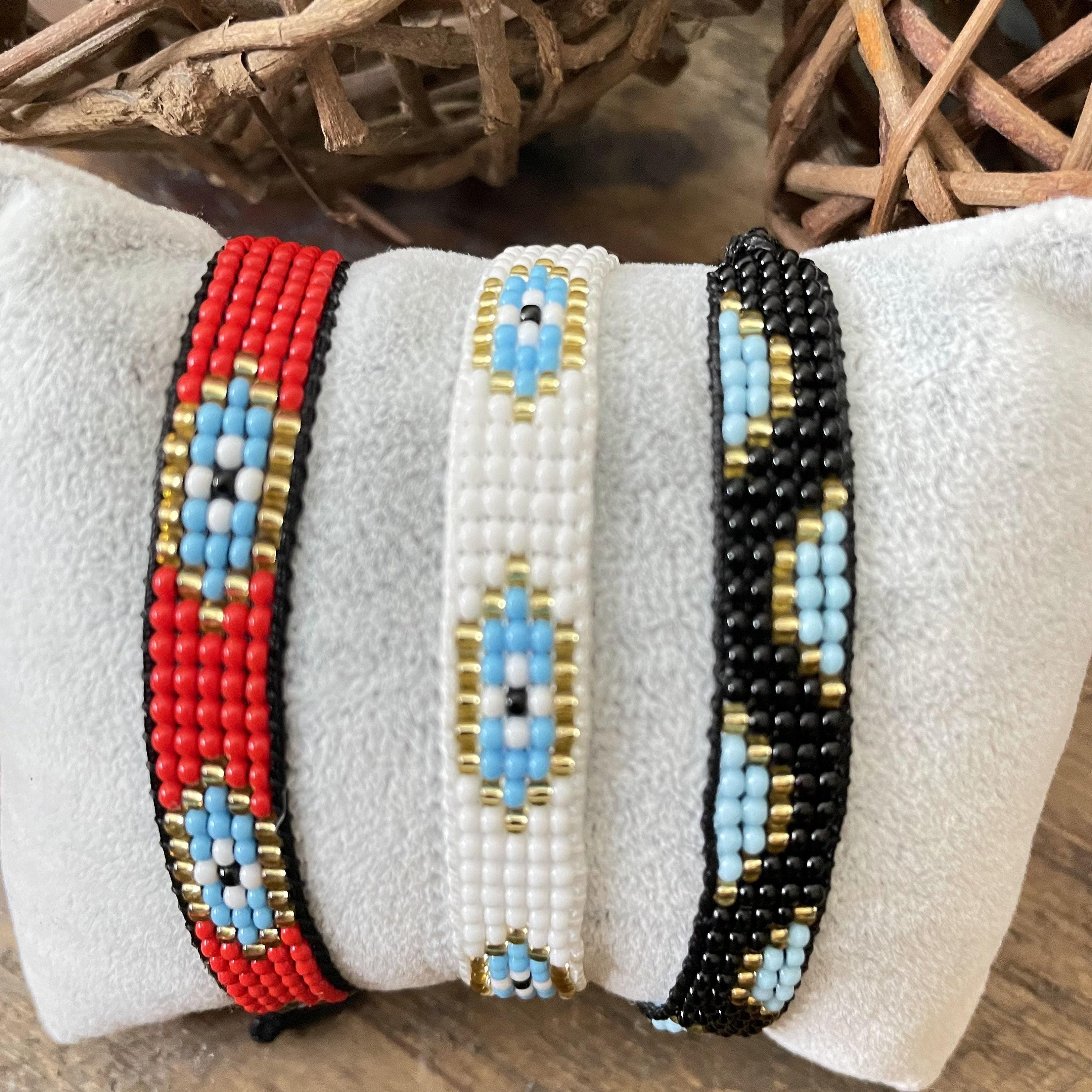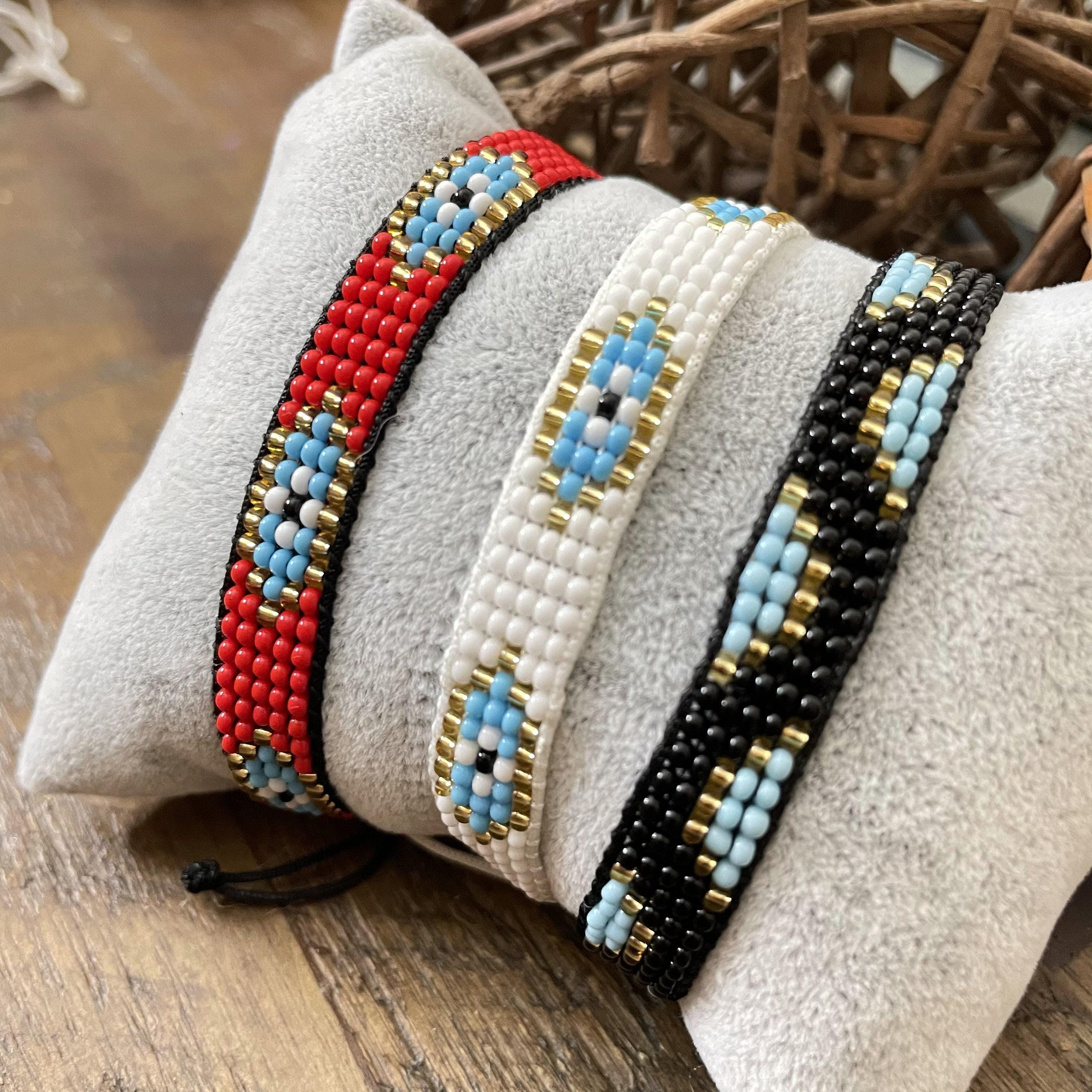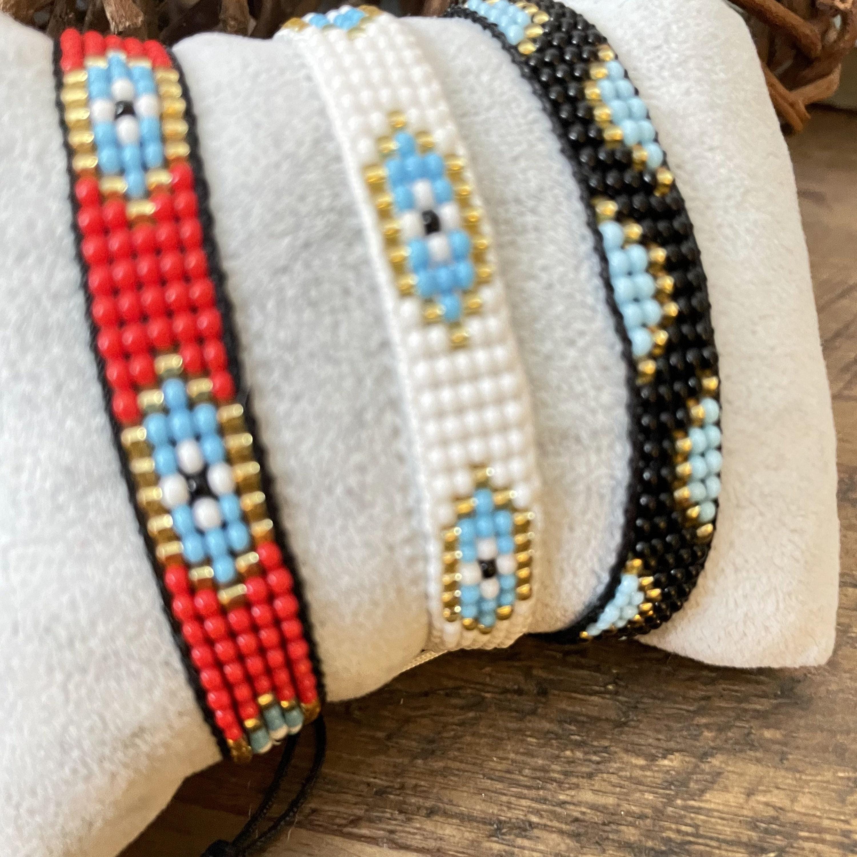 Discover the charm of handcrafted artistry with this exquisite set of woven bracelets, featuring delicate glass bead detailing and the protective symbolism of the evil eye. Each braided bracelet is meticulously made using Miyuki seed beads, blending tradition and style into a versatile accessory perfect for everyday wear. These adjustable knotted bracelets celebrate friendship and love, designed to complement any wrist with vibrant color energy.