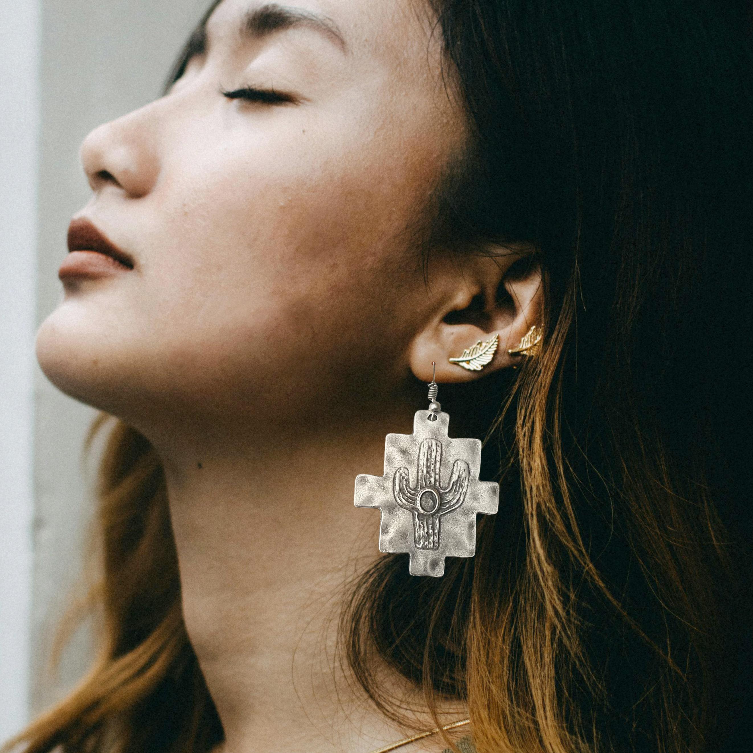 Immerse yourself in the allure of boho chic jewelry with these exquisite silver tone earrings, designed to bring a fresh ethnic charm to your collection. Inspired by tribal patterns and crafted for jewelry making enthusiasts, these bold dangle earrings capture the essence of free-spirited style and artistic expression. Whether dressing up for casual wear or adding flair to festival looks, these statement earrings make a captivating addition.