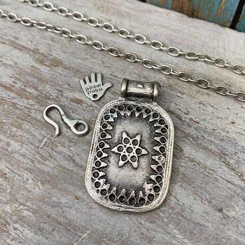 Discover the enchanting blend of vintage charm and celestial beauty with this antique silver plated brass pendant. Inspired by bohemian elegance, this necklace pendant features intricate snake and moon motifs that evoke a mystical allure. Whether you’re drawn to minimalist designs or zodiac symbolism, this versatile pendant adds a subtle yet captivating touch to any outfit.