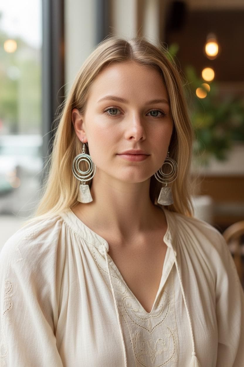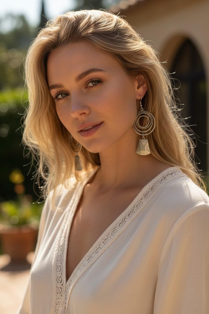 Discover the allure of bohemian earrings that effortlessly blend bold design with free-spirited charm. These chandelier earrings capture the essence of silver boho earrings, offering a striking silhouette that complements any boho chic ensemble. Crafted to make a statement, they bring a touch of hippie elegance to your jewelry collection.
