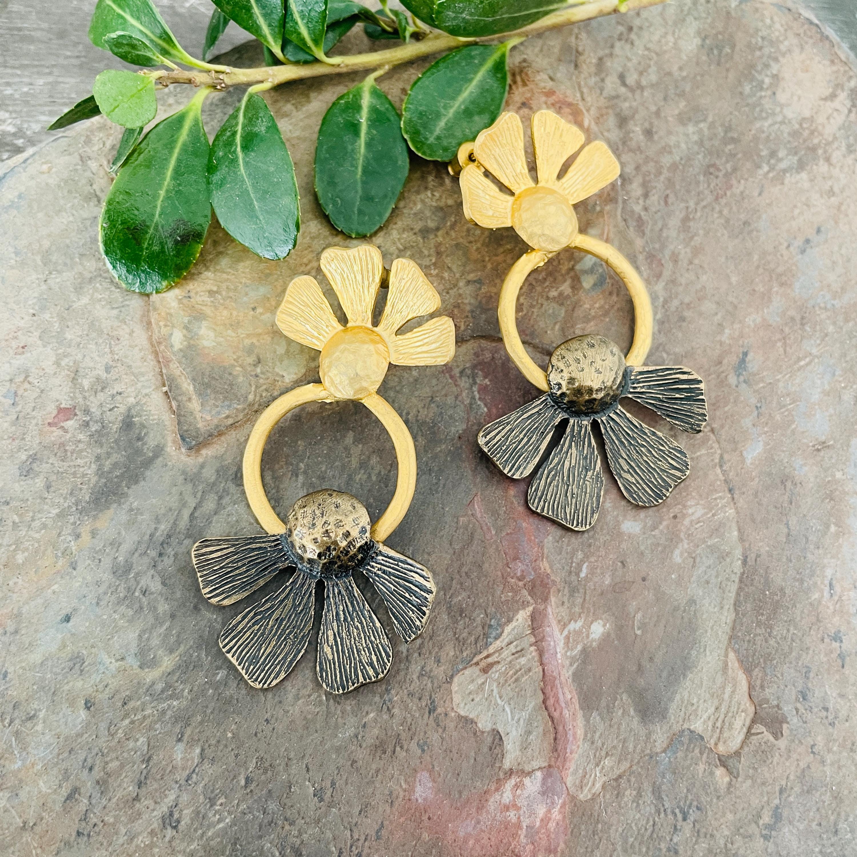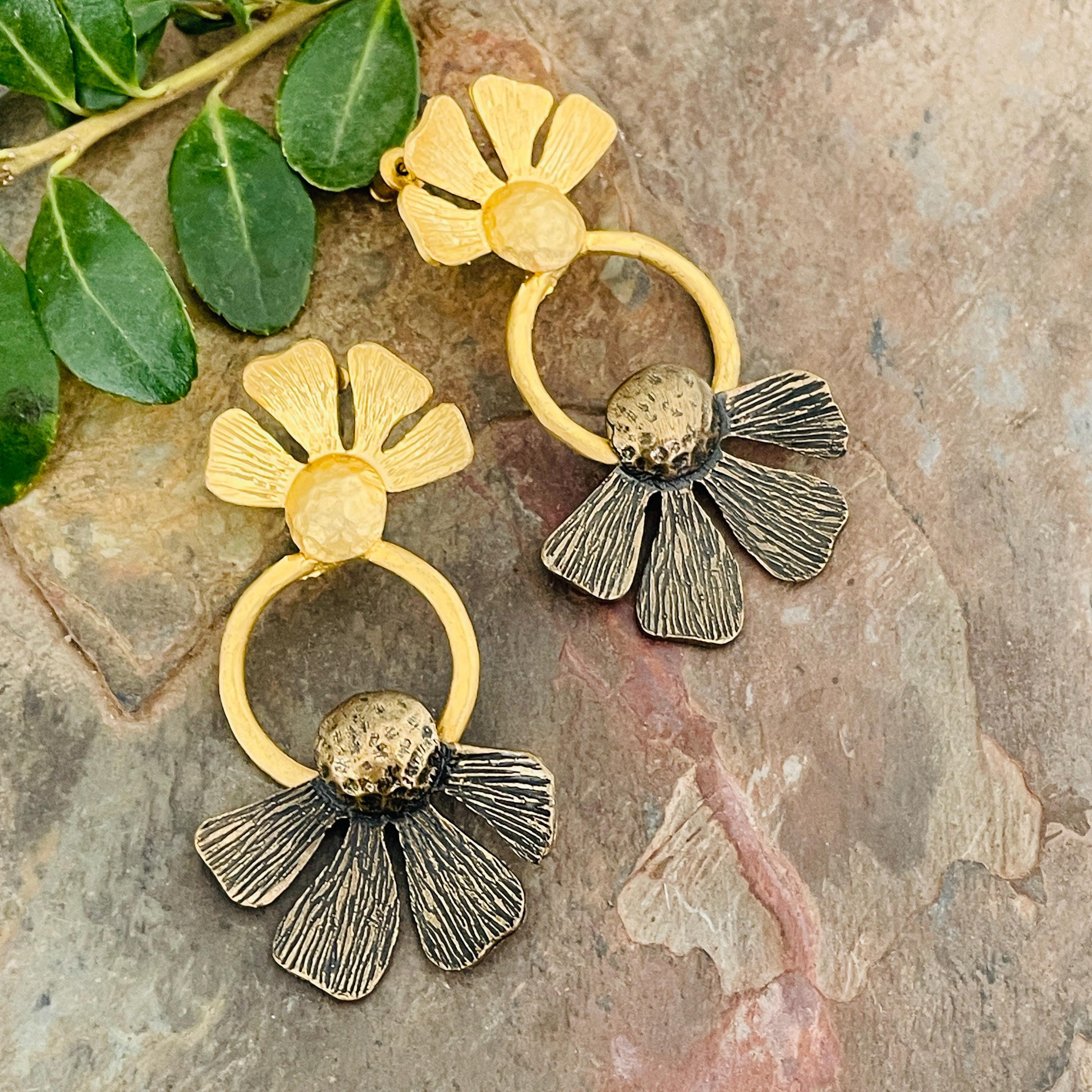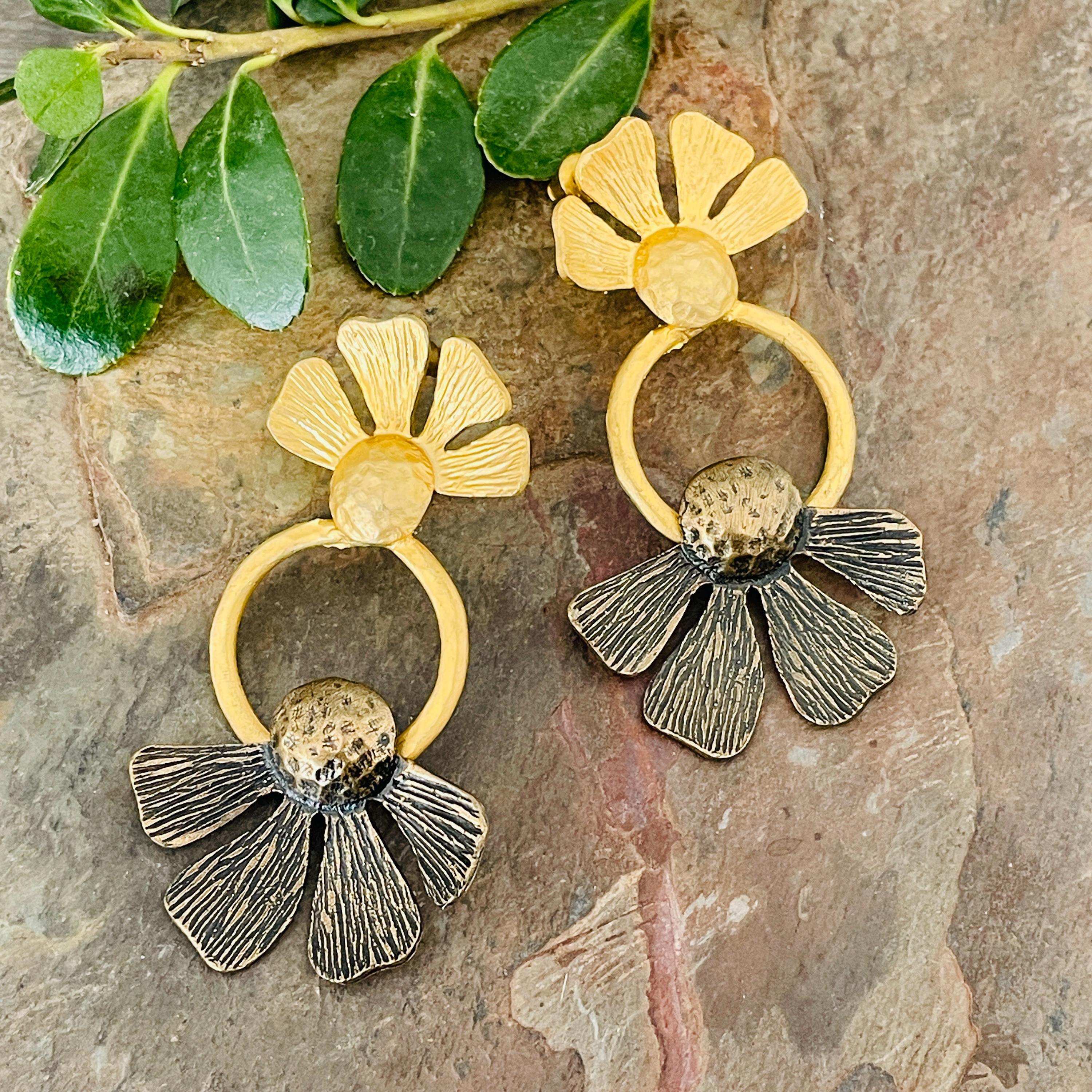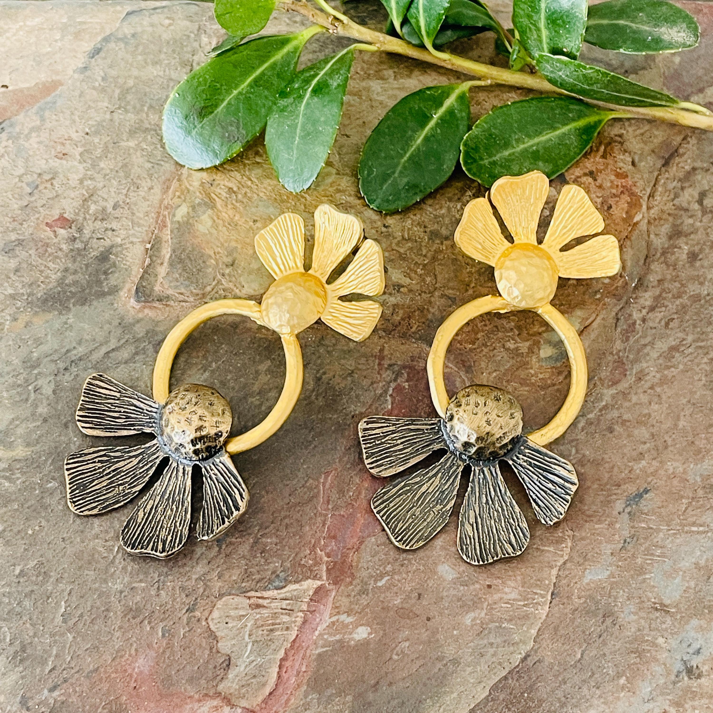 These earrings are sterling silver plated with a matte, antique oxidized finish.