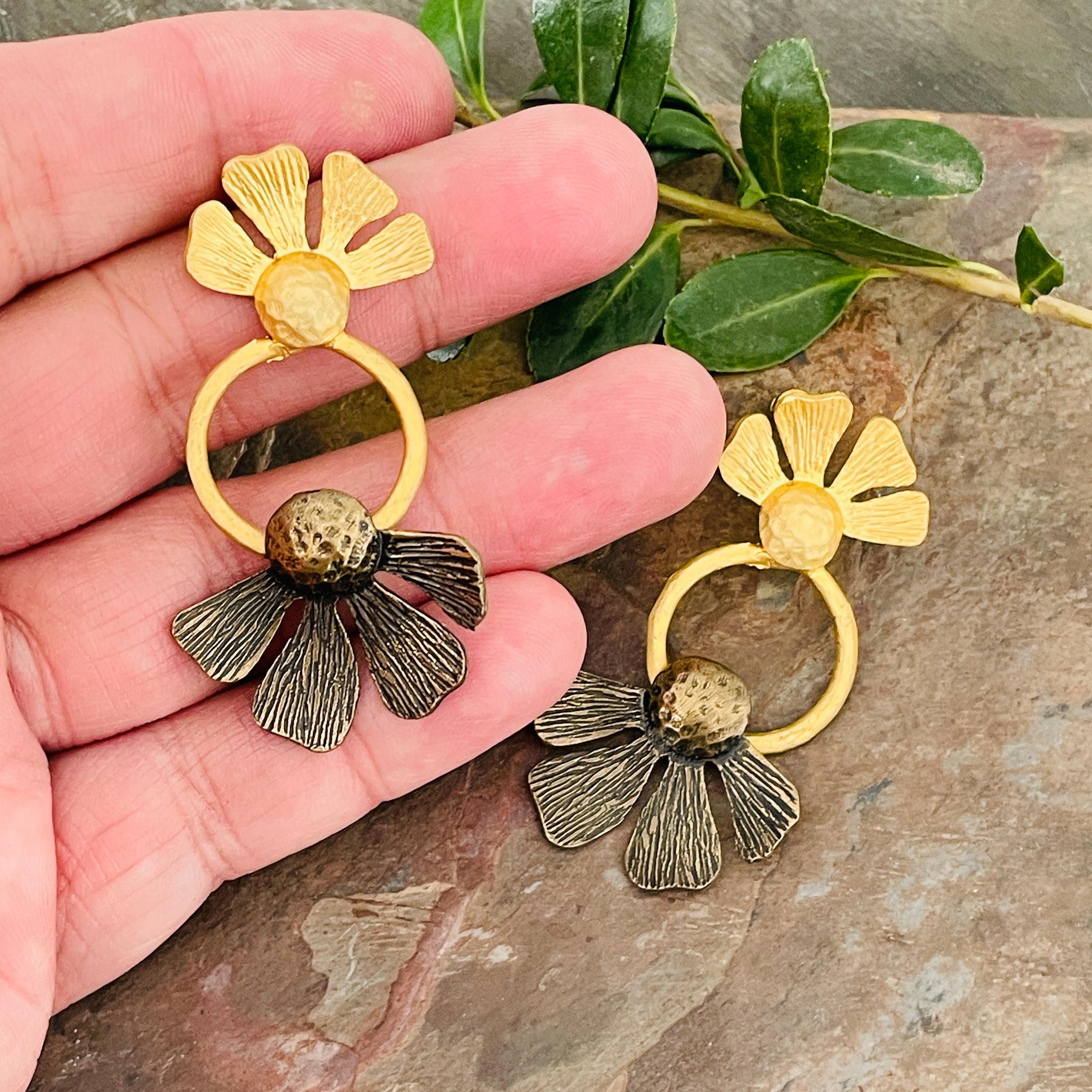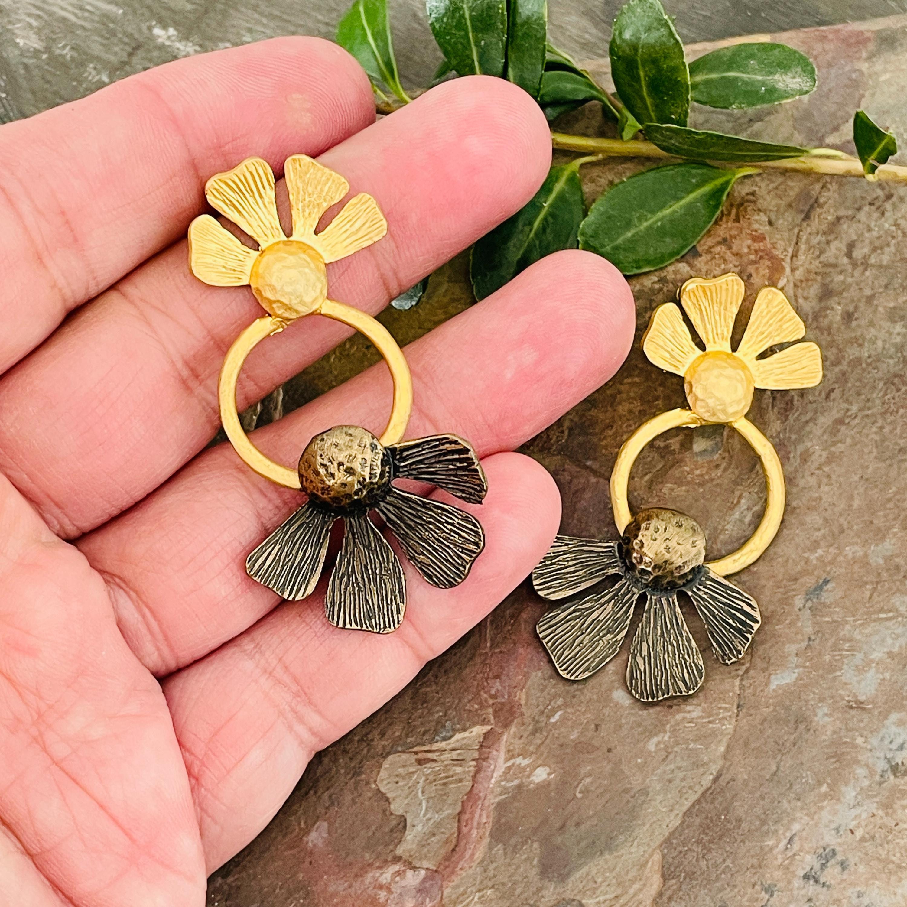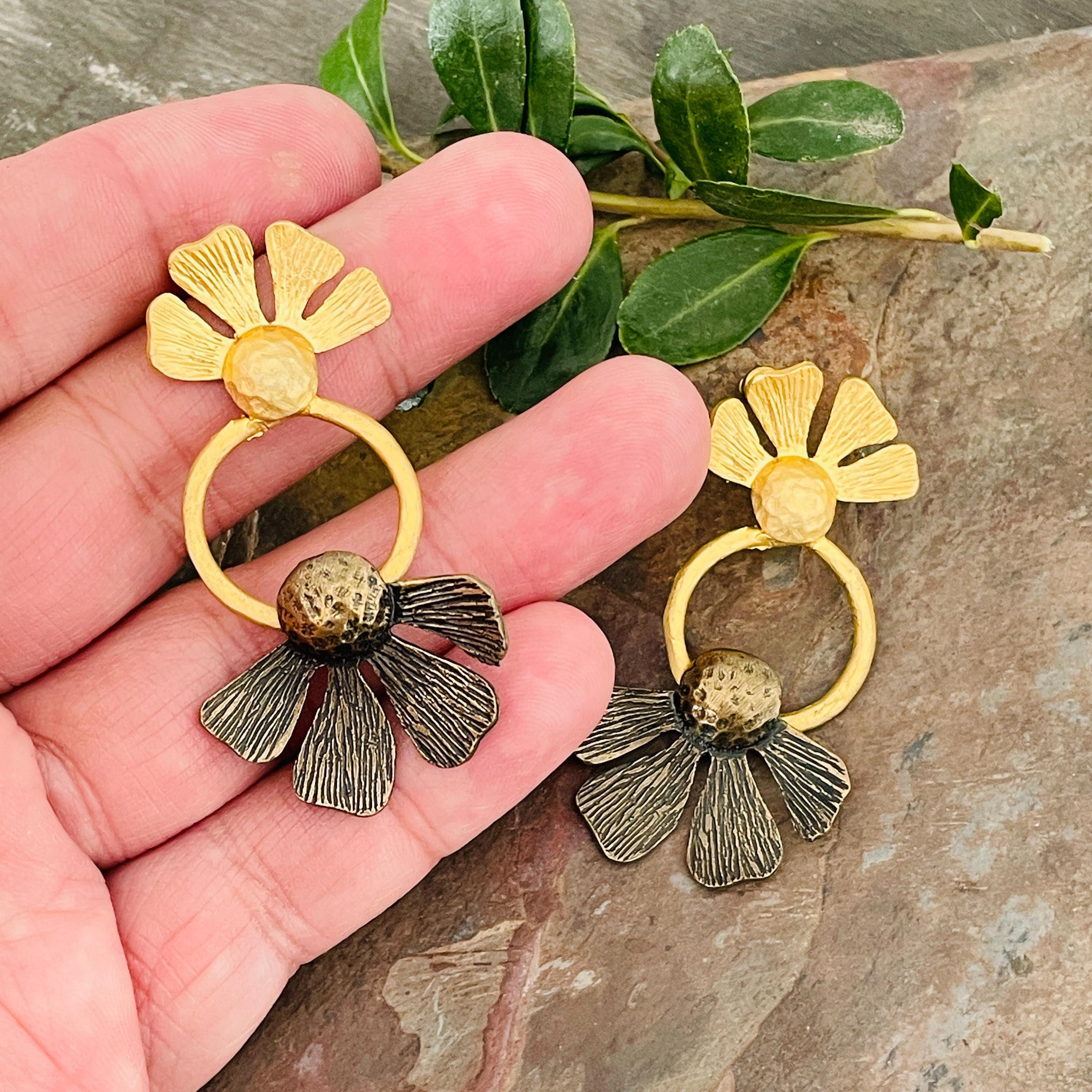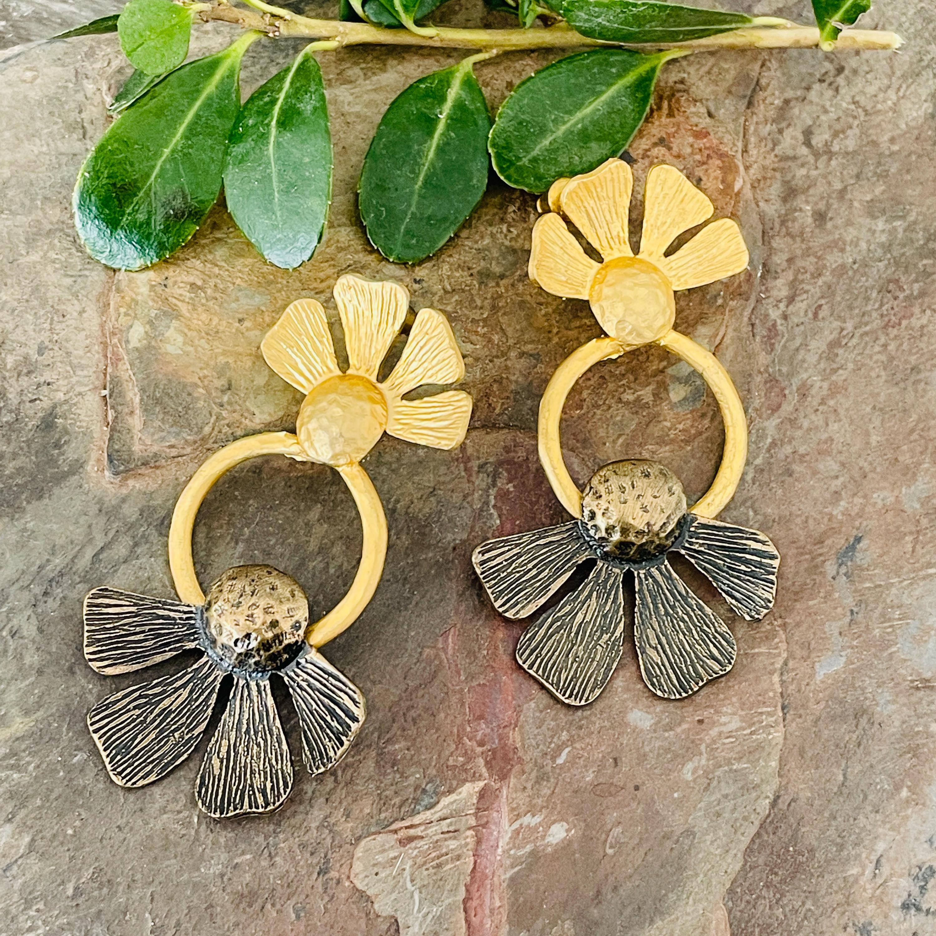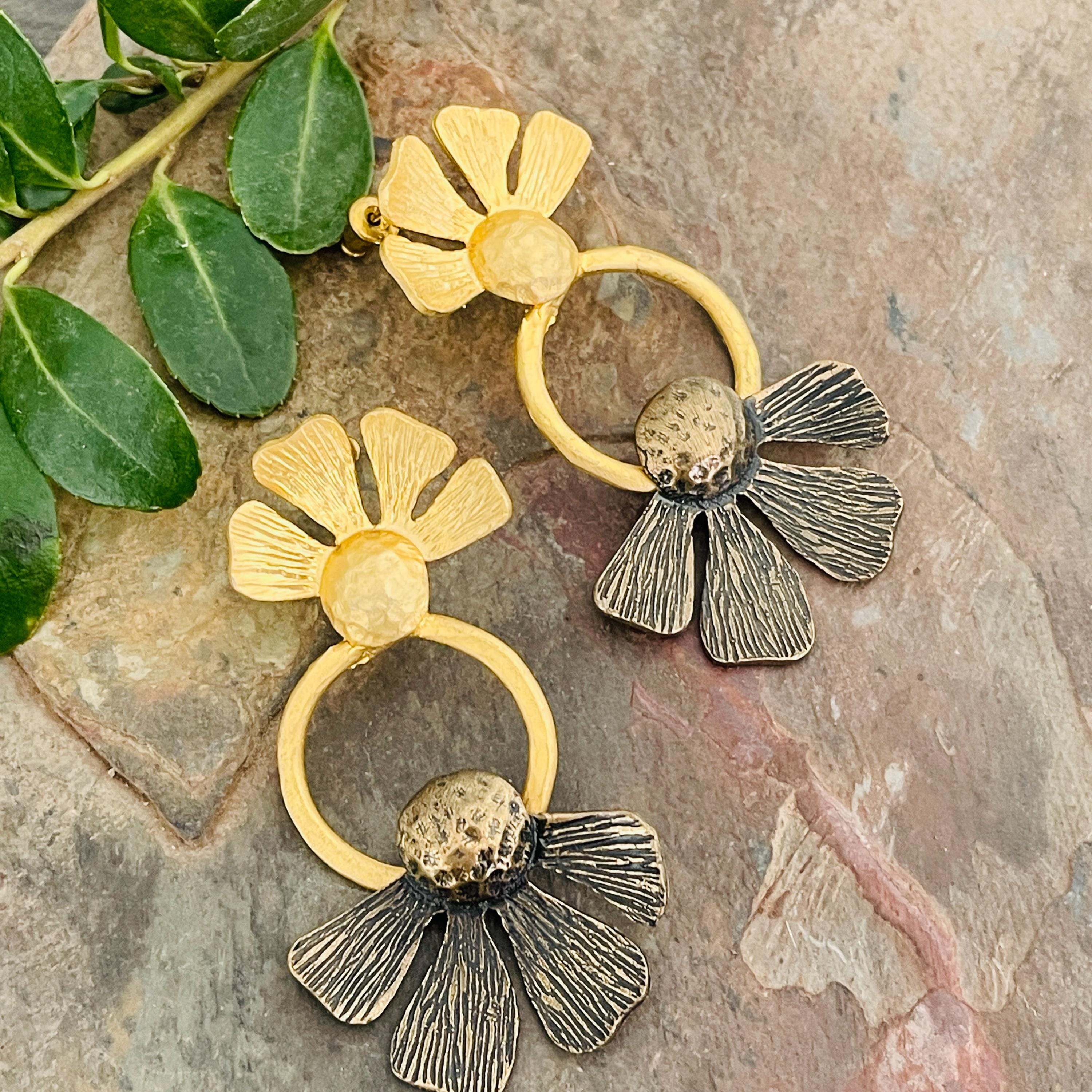 These earrings are sterling silver plated with a matte, antique oxidized finish.